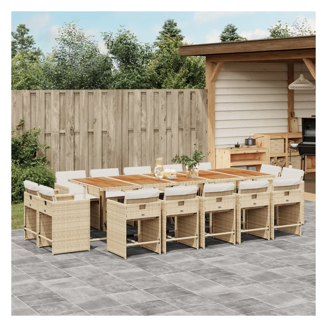 - Matériau : résine tressée, acier enduit de poudre, bois d'acacia massif