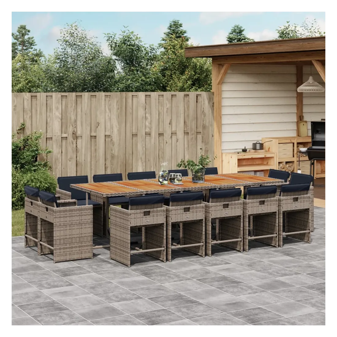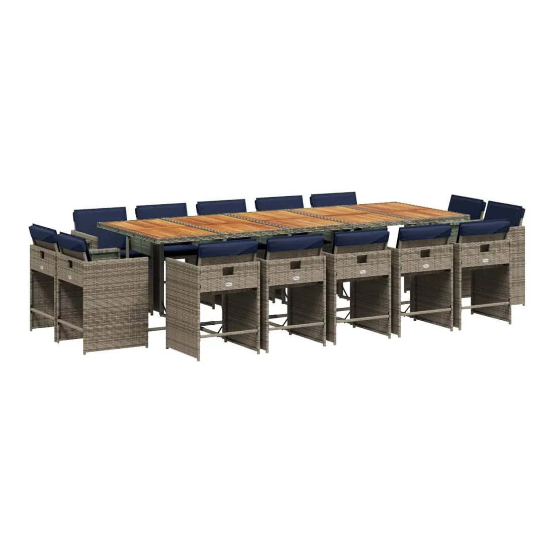 Ensemble à manger de jardin 15 pcs coussins gris résine tressée