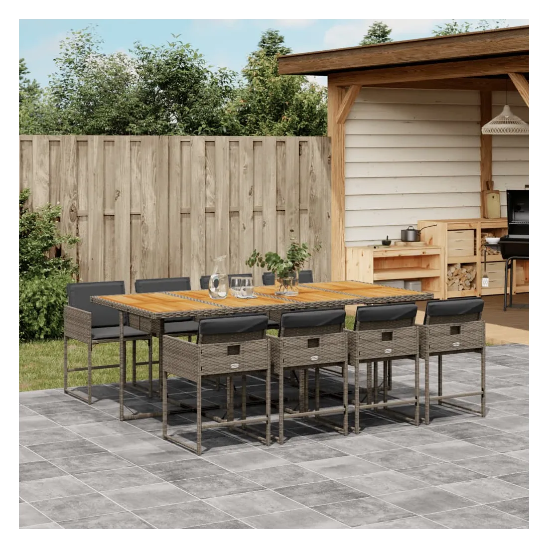 Cet ensemble de salle à manger de jardin est un excellent choix pour les repas en plein air ou pour vous détendre dans le jardin, dans l'arrière-cour ou sur la terrasse. Matériau durable : la résine tressée, également connue sous le nom de poly rotin, est un matériau synthétique solide et nécessitant peu d'entretien qui ressemble au rotin naturel. Il est léger, facile à nettoyer et couramment utilisé pour les meubles d'extérieur en raison de sa durabilité et de ses propriétés de résistance aux intempéries.Rangement compact : ces chaises sont dotées d'un dossier rabattable, ce qui permet de les ranger facilement sous la table. Une fois pliées, elles se rangent parfaitement sous la table, formant un cube peu encombrant.Expérience d'assise confortable : ce mobilier d'extérieur, doté de coussins épais, offre une expérience d'assise confortable.Housse amovible et lavable : ces coussins de siège sont dotés de housses amovibles pour un lavage et un entretien faciles. Les housses de coussin ont un rabat à l'arrière pour une fixation facile aux dossiers.Dessus stable et facile à nettoyer : cette table de jardin a un dessus en bois d'acacia robuste, durable et facile à nettoyer avec un chiffon humide. Bon à savoir :Pour que vos meubles d'extérieur restent beaux, nous vous recommandons de les protéger avec une housse imperméable.