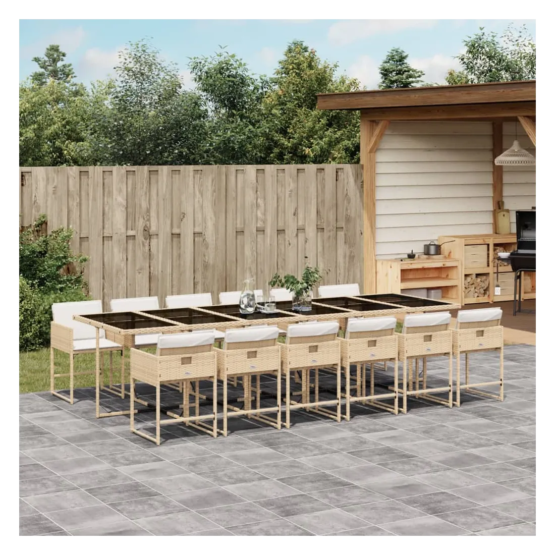 Cet ensemble de salle à manger de jardin est un excellent choix pour les repas en plein air ou pour vous détendre dans le jardin, dans l'arrière-cour ou sur la terrasse. Matériau durable : la résine tressée, également connue sous le nom de poly rotin, est un matériau synthétique solide et nécessitant peu d'entretien qui ressemble au rotin naturel. Il est léger, facile à nettoyer et couramment utilisé pour les meubles d'extérieur en raison de sa durabilité et de ses propriétés de résistance aux intempéries.Rangement compact : ces chaises sont dotées d'un dossier rabattable, ce qui permet de les ranger facilement sous la table. Une fois pliées, elles se rangent parfaitement sous la table, formant un cube peu encombrant.Expérience d'assise confortable : ce mobilier d'extérieur, doté de coussins épais, offre une expérience d'assise confortable.Housse amovible et lavable : ces coussins de siège sont dotés de housses amovibles pour un lavage et un entretien faciles. Les housses de coussin ont un rabat à l'arrière pour une fixation facile aux dossiers.Dessus en verre : le dessus de la table d'extérieur est fabriqué en verre trempé solide et durable, ce qui le rend facile à nettoyer avec un chiffon humide et ajoute une touche d'élégance à votre espace extérieur. Bon à savoir :Pour que vos meubles d'extérieur restent beaux, nous vous recommandons de les protéger avec une housse imperméable.