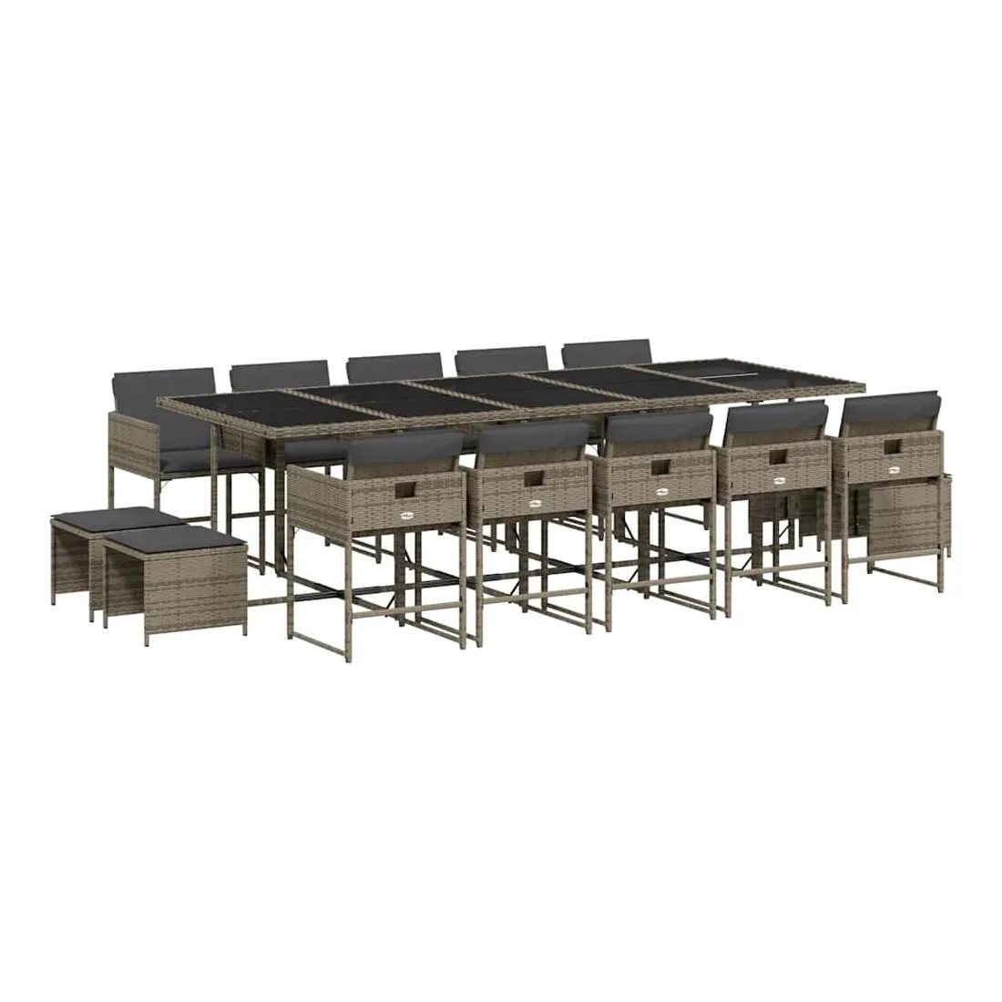 Cet ensemble de salle à manger de jardin est un excellent choix pour les repas en plein air ou pour vous détendre dans le jardin, dans l'arrière-cour ou sur la terrasse. Matériau durable : la résine tressée, également connue sous le nom de poly rotin, est un matériau synthétique solide et nécessitant peu d'entretien qui ressemble au rotin naturel. Il est léger, facile à nettoyer et couramment utilisé pour les meubles d'extérieur en raison de sa durabilité et de ses propriétés de résistance aux intempéries.Rangement compact : ces chaises sont dotées d'un dossier rabattable, ce qui permet de les ranger facilement sous la table. Une fois pliées, elles se rangent parfaitement sous la table, formant un cube peu encombrant. De plus, les tabourets peuvent également être rangés sous les chaises, maximisant encore davantage l'efficacité de l'espace.Expérience d'assise confortable : ce mobilier d'extérieur, doté de coussins épais, offre une expérience d'assise confortable.Housse amovible et lavable : ces coussins de siège sont dotés de housses amovibles pour un lavage et un entretien faciles. Les housses de coussin ont un rabat à l'arrière pour une fixation facile aux dossiers.Dessus en verre : le dessus de la table d'extérieur est fabriqué en verre trempé solide et durable, ce qui le rend facile à nettoyer avec un chiffon humide et ajoute une touche d'élégance à votre espace extérieur. Bon à savoir : Pour que vos meubles d'extérieur restent beaux, nous vous recommandons de les protéger avec une housse imperméable.