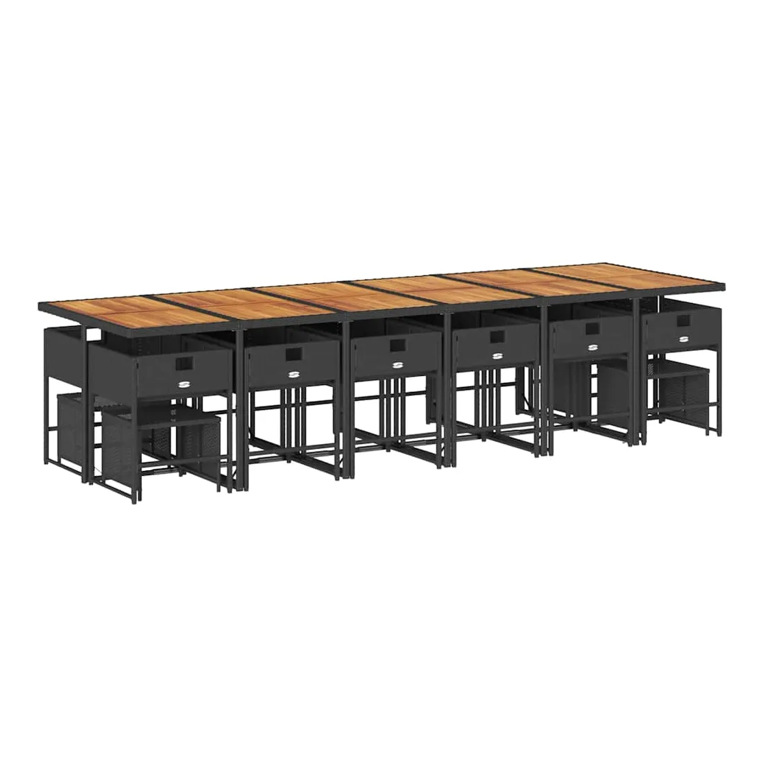 Cet ensemble de salle à manger de jardin est un excellent choix pour les repas en plein air ou pour vous détendre dans le jardin, dans l'arrière-cour ou sur la terrasse. Matériau durable : la résine tressée, également connue sous le nom de poly rotin, est un matériau synthétique solide et nécessitant peu d'entretien qui ressemble au rotin naturel. Il est léger, facile à nettoyer et couramment utilisé pour les meubles d'extérieur en raison de sa durabilité et de ses propriétés de résistance aux intempéries.Rangement compact : ces chaises sont dotées d'un dossier rabattable, ce qui permet de les ranger facilement sous la table. Une fois pliées, elles se rangent parfaitement sous la table, formant un cube peu encombrant. De plus, les tabourets peuvent également être rangés sous les chaises, maximisant encore davantage l'efficacité de l'espace.Expérience d'assise confortable : ce mobilier d'extérieur, doté de coussins épais, offre une expérience d'assise confortable.Housse amovible et lavable : ces coussins de siège sont dotés de housses amovibles pour un lavage et un entretien faciles. Les housses de coussin ont un rabat à l'arrière pour une fixation facile aux dossiers.Dessus stable et facile à nettoyer : cette table de jardin a un dessus en bois d'acacia robuste, durable et facile à nettoyer avec un chiffon humide. Bon à savoir : Pour que vos meubles d'extérieur restent beaux, nous vous recommandons de les protéger avec une housse imperméable.
