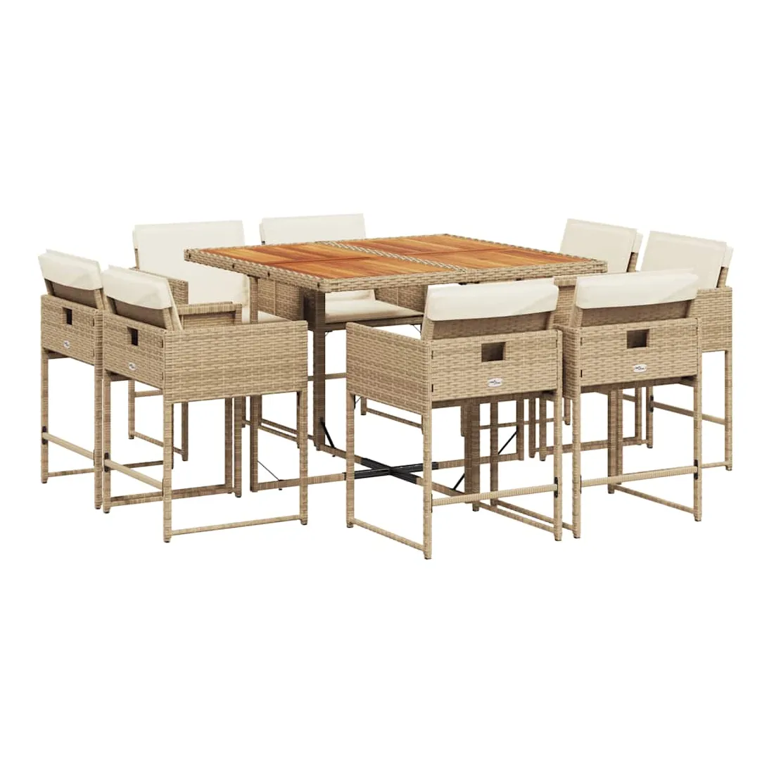 Cet ensemble de salle à manger de jardin est un excellent choix pour les repas en plein air ou pour vous détendre dans le jardin, l'arrière-cour ou le patio. Matériau durable : la résine tressée, également connue sous le nom de poly rotin, est un matériau synthétique solide et nécessitant peu d'entretien qui ressemble au rotin naturel. Il est léger, facile à nettoyer et couramment utilisé pour les meubles d'extérieur en raison de sa durabilité et de ses propriétés de résistance aux intempéries.Rangement compact : ces chaises sont dotées d'un dossier rabattable, ce qui permet de les ranger facilement sous la table. Une fois pliées, elles se rangent parfaitement sous la table, formant un cube peu encombrant.Expérience d'assise confortable : ce mobilier d'extérieur, doté de coussins épais, offre une expérience d'assise confortable.Housse amovible et lavable : ces coussins de siège sont dotés de housses amovibles pour un lavage et un entretien faciles. Les housses de coussin de chaise ont un rabat à l'arrière pour une fixation facile aux chaises.Dessus stable et facile à nettoyer : cette table de patio a un dessus en bois d'acacia robuste, durable et facile à nettoyer avec un chiffon humide. Bon à savoir :Pour que vos meubles d'extérieur restent beaux, nous vous recommandons de les protéger avec une housse imperméable.