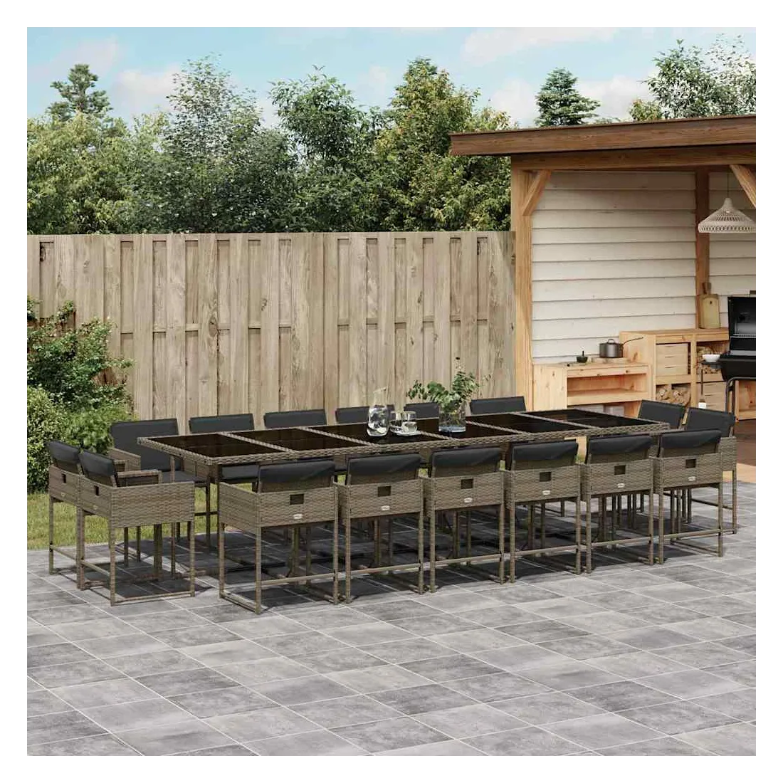 Cet ensemble de salle à manger de jardin est un excellent choix pour les repas en plein air ou pour vous détendre dans le jardin, l'arrière-cour ou le patio. Matériau durable : la résine tressée, également connue sous le nom de poly rotin, est un matériau synthétique solide et nécessitant peu d'entretien qui ressemble au rotin naturel. Il est léger, facile à nettoyer et couramment utilisé pour les meubles d'extérieur en raison de sa durabilité et de ses propriétés de résistance aux intempéries.Rangement compact : ces chaises sont dotées d'un dossier rabattable, ce qui permet de les ranger facilement sous la table. Une fois pliées, elles se rangent parfaitement sous la table, formant un cube peu encombrant.Expérience d'assise confortable : ce mobilier d'extérieur, doté de coussins épais, offre une expérience d'assise confortable.Housse amovible et lavable : ces coussins de siège sont dotés de housses amovibles pour un lavage et un entretien faciles. Les housses de coussin de chaise ont un rabat à l'arrière pour une fixation facile aux chaises.Dessus en verre : le dessus de la table de jardin est fabriqué en verre trempé solide et durable, ce qui le rend facile à nettoyer avec un chiffon humide et ajoute une touche d'élégance à votre espace extérieur. Bon à savoir :Pour que vos meubles d'extérieur restent beaux, nous vous recommandons de les protéger avec une housse imperméable.