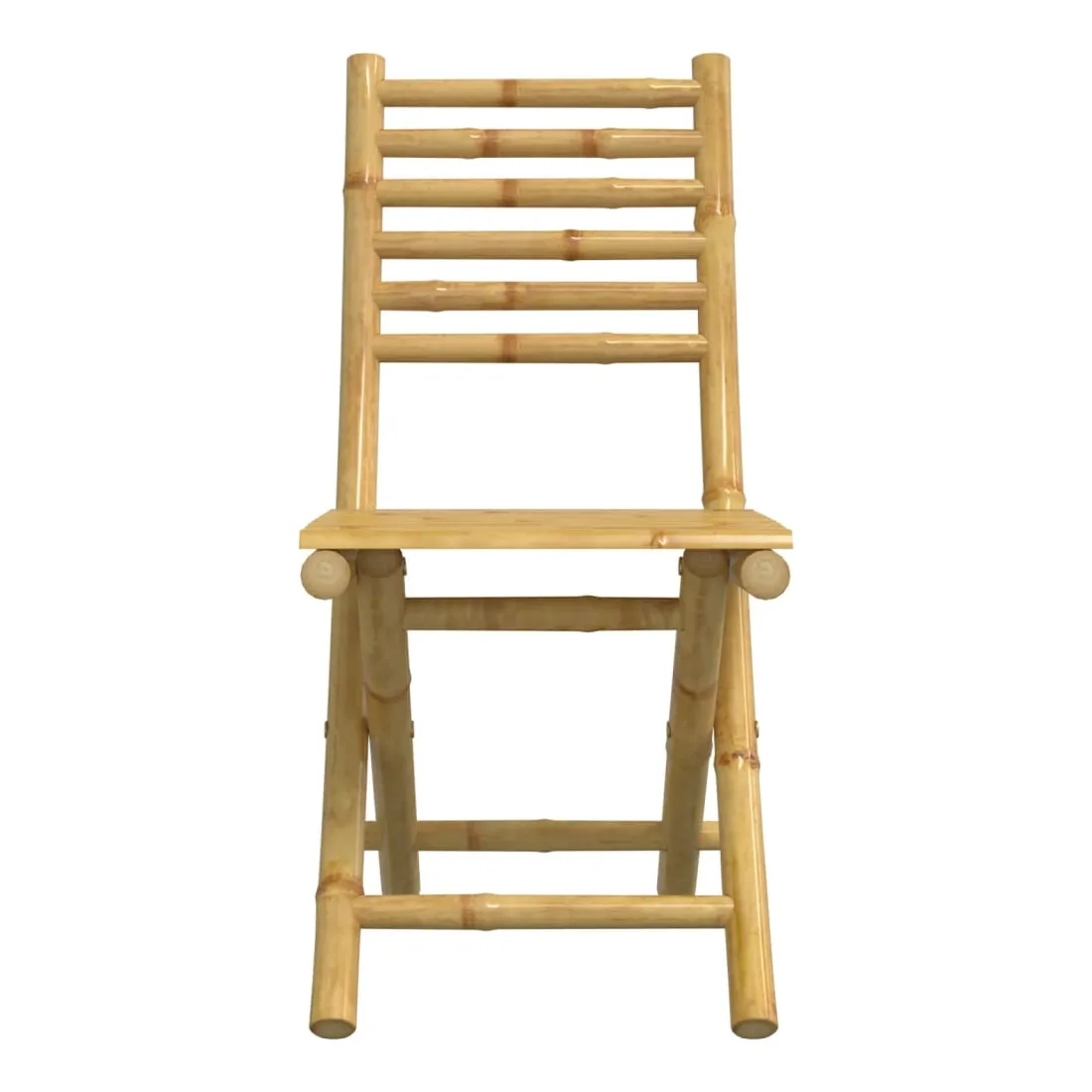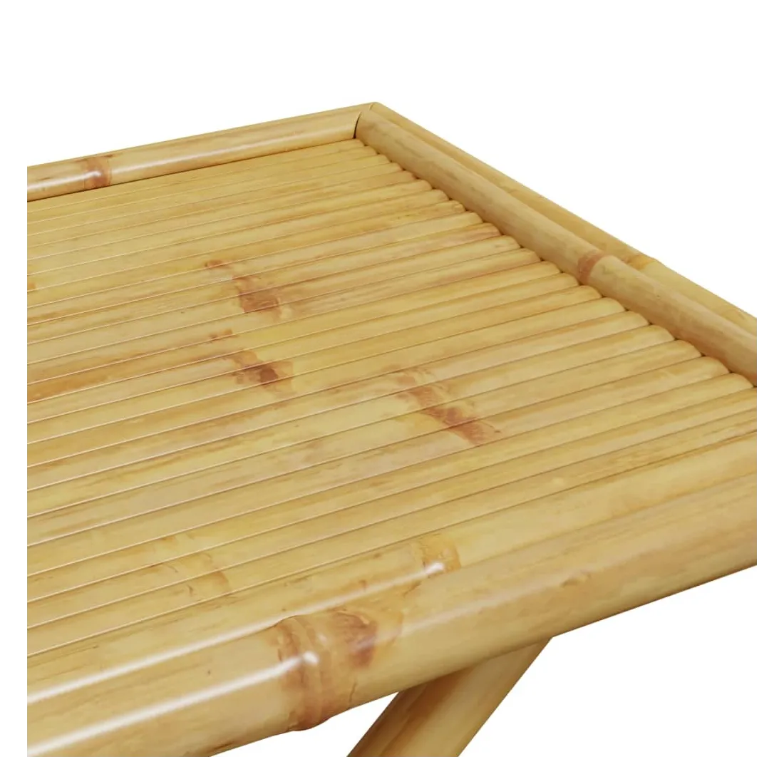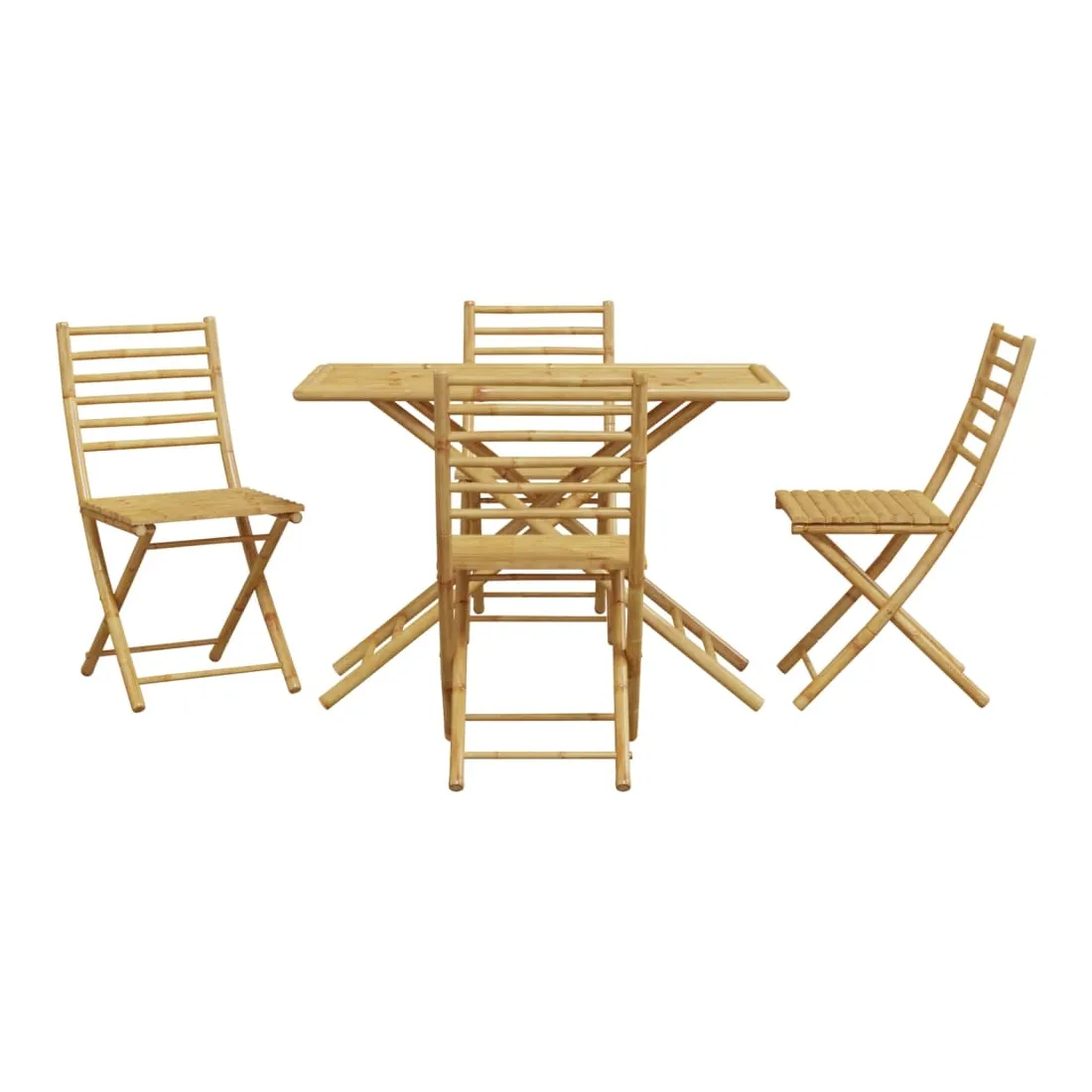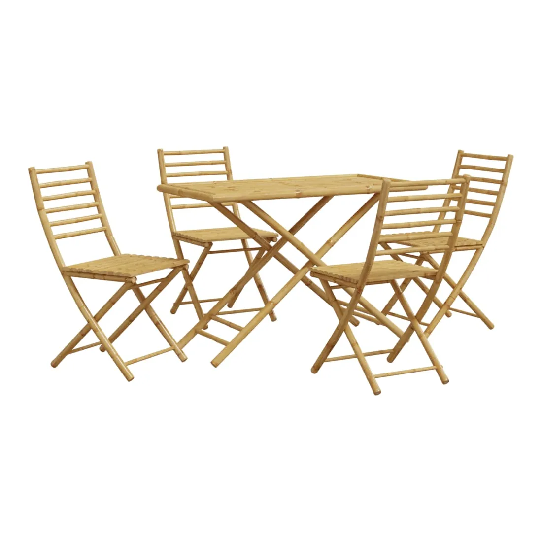 Cet ensemble de salle à manger de jardin, au design élégant et contemporain, sera un excellent choix pour manger ou vous détendre dans le jardin. Durable : en tant que matériau naturel, le bambou offre une bonne respirabilité et une faible odeur. Ces qualités rendent l’ensemble à manger de jardin durable, résistant à l’eau et de longue durée.Design pliable : la table et les chaises de salle à manger d'extérieur peuvent être facilement repliées lorsqu'elles ne sont pas utilisées pour faciliter le rangement et le transport.Dessus stable : le dessus stable de la table de jardin est idéal pour placer votre boisson ou toute autre nécessité dont vous avez besoin à portée de main.Une expérience d'assise confortable : dotée d'un dossier, la chaise d'extérieur vous offre un confort optimal. Bon à savoir :Pour que vos meubles d'extérieur restent beaux, nous vous recommandons de les protéger avec une housse imperméable.