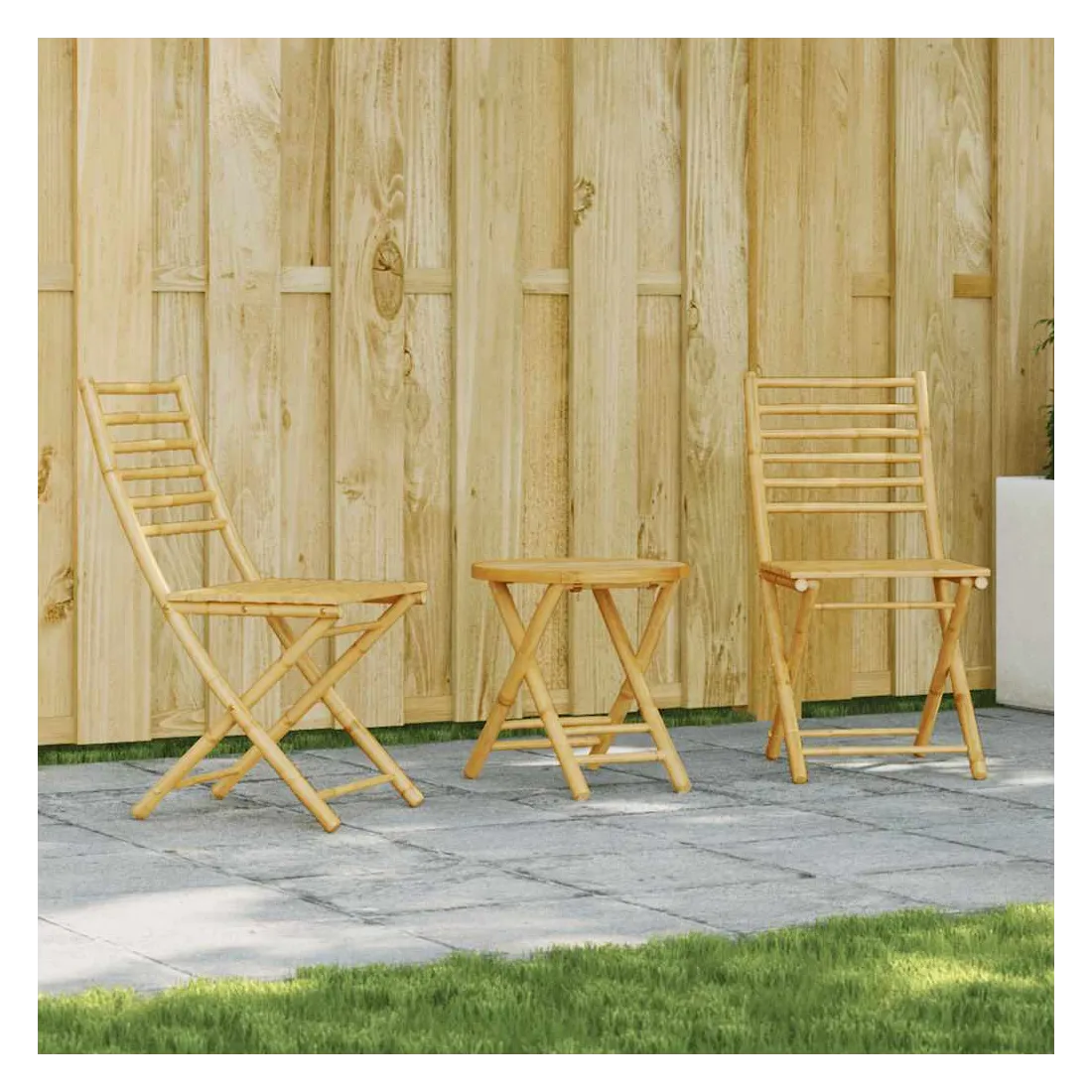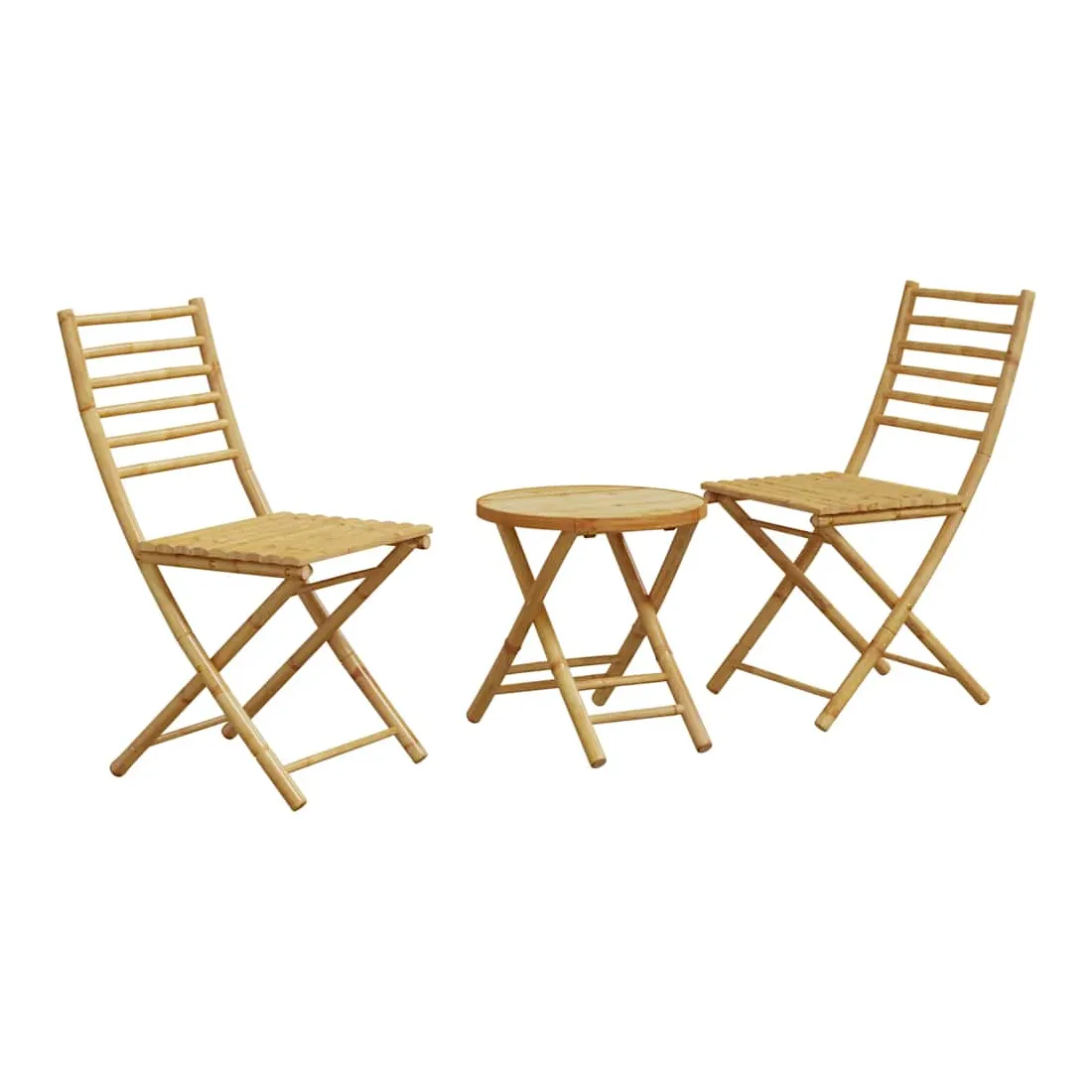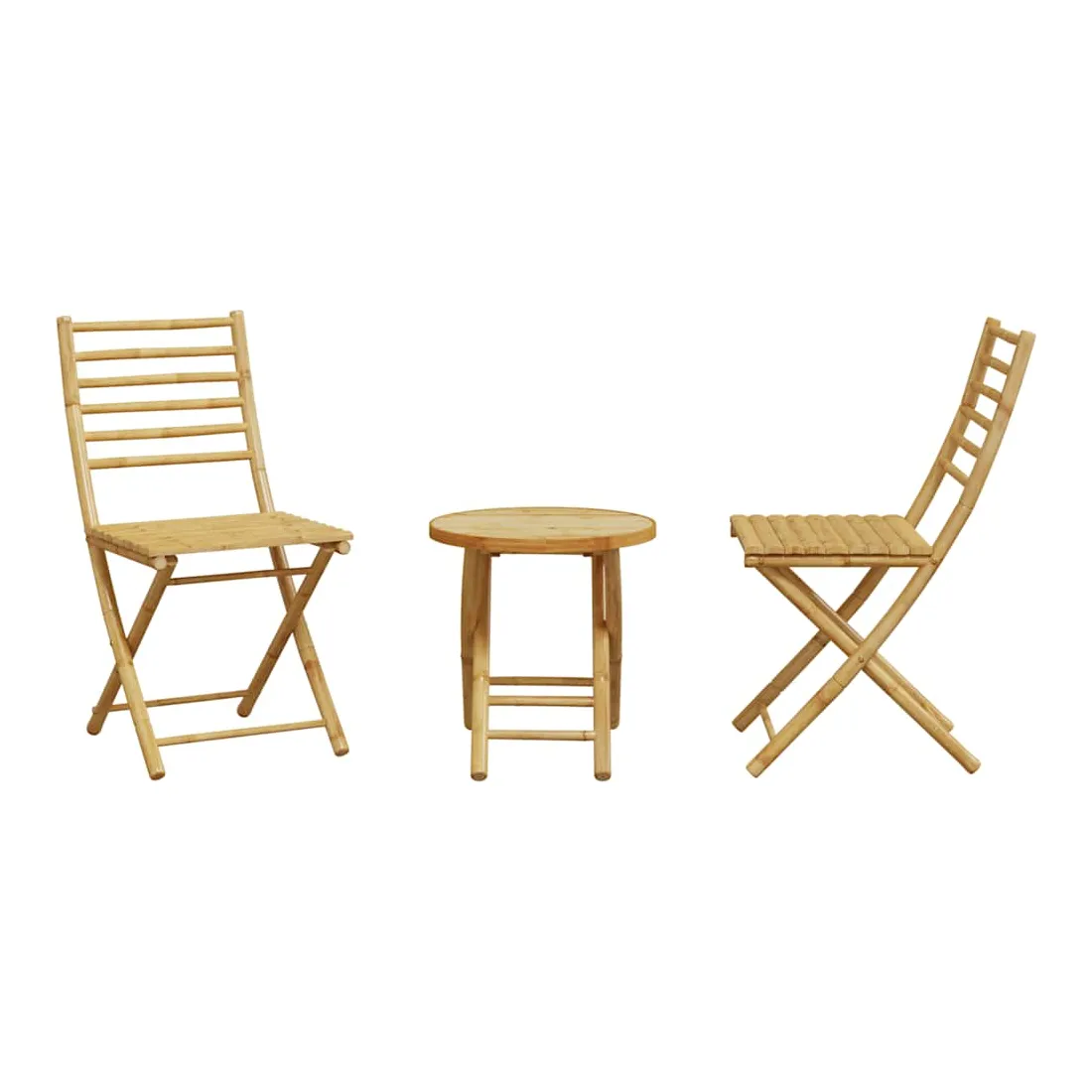 Savourez une tasse de café ou discutez avec votre famille et vos amis dans le jardin, l'arrière-cour ou sur le balcon avec cet ensemble de bistro ! Durable : en tant que matériau naturel, le bambou offre une bonne respirabilité et une faible odeur. Ces qualités rendent l’ensemble de bistro de jardin durable, résistant à l’eau et de longue durée.Design pliable : l'ensemble de bistro d'extérieur peut être facilement plié lorsqu'il n'est pas utilisé pour faciliter le rangement et le transport.Dessus stable : le dessus stable de la table de jardin est idéal pour placer votre boisson ou toute autre nécessité dont vous avez besoin à portée de main.Une expérience d'assise confortable : dotée d'un dossier, la chaise d'extérieur vous offre un confort optimal. Bon à savoir :Pour que vos meubles d'extérieur restent beaux, nous vous recommandons de les protéger avec une housse imperméable.