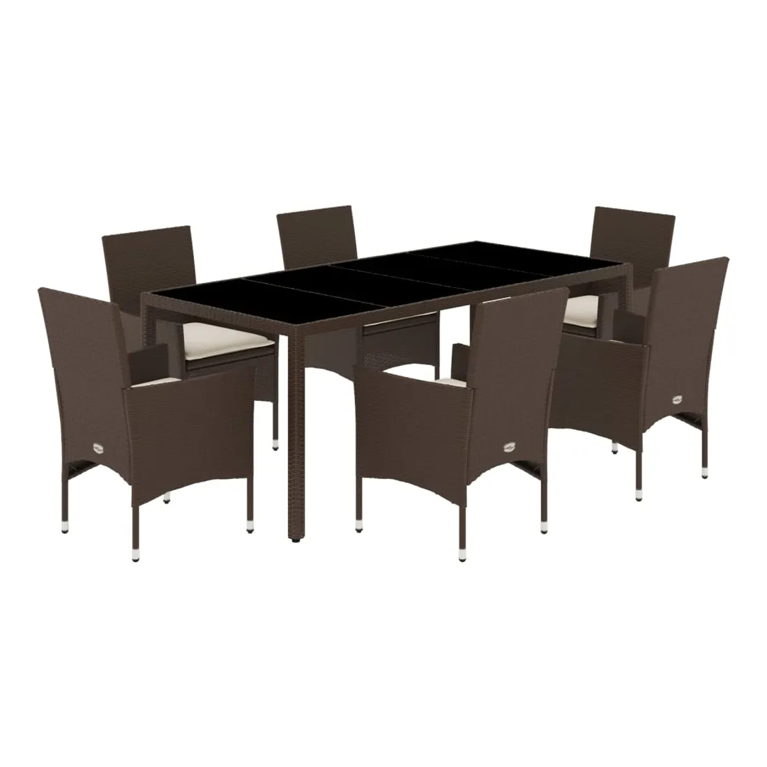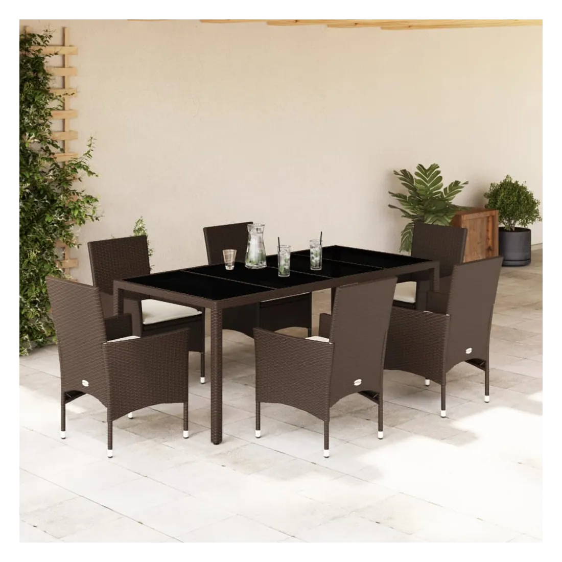 Cet ensemble de salle à manger de jardin est un excellent choix pour les repas en plein air ou pour vous détendre dans le jardin, dans l'arrière-cour ou sur la terrasse. Matériau durable : la résine tressée, également connue sous le nom de poly rotin, est un matériau synthétique solide et nécessitant peu d'entretien qui ressemble au rotin naturel. Il est léger, facile à nettoyer et couramment utilisé pour les meubles d'extérieur en raison de sa durabilité et de ses propriétés de résistance aux intempéries.Expérience d'assise confortable : cet ensemble de meubles d'extérieur, doté de coussins épais, offre une expérience d'assise confortable.Housse amovible et lavable : ces coussins de siège sont dotés de housses amovibles pour un lavage et un entretien faciles.Dessus en verre : le dessus de la table d'extérieur est fabriqué en verre trempé solide et durable, ce qui le rend facile à nettoyer avec un chiffon humide et ajoute une touche d'élégance à votre espace extérieur. Bon à savoir :Pour que vos meubles d'extérieur restent beaux, nous vous recommandons de les protéger avec une housse imperméable.