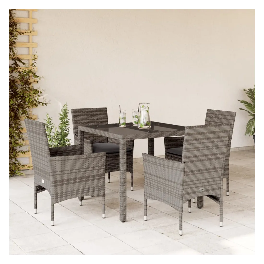 Cet ensemble de salle à manger de jardin est un excellent choix pour les repas en plein air ou pour vous détendre dans le jardin, dans l'arrière-cour ou sur la terrasse. Matériau durable : la résine tressée, également connue sous le nom de poly rotin, est un matériau synthétique solide et nécessitant peu d'entretien qui ressemble au rotin naturel. Il est léger, facile à nettoyer et couramment utilisé pour les meubles d'extérieur en raison de sa durabilité et de ses propriétés de résistance aux intempéries.Expérience d'assise confortable : cet ensemble de meubles d'extérieur, doté de coussins épais, offre une expérience d'assise confortable.Housse amovible et lavable : ces coussins de siège sont dotés de housses amovibles pour un lavage et un entretien faciles.Dessus en verre : le dessus de la table d'extérieur est fabriqué en verre trempé solide et durable, ce qui le rend facile à nettoyer avec un chiffon humide et ajoute une touche d'élégance à votre espace extérieur. Bon à savoir :Pour que vos meubles d'extérieur restent beaux, nous vous recommandons de les protéger avec une housse imperméable.
