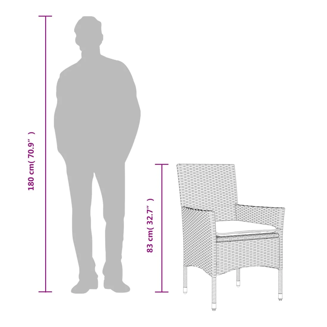 - Hauteur du siège à partir du sol (sans coussin) : 42 cm