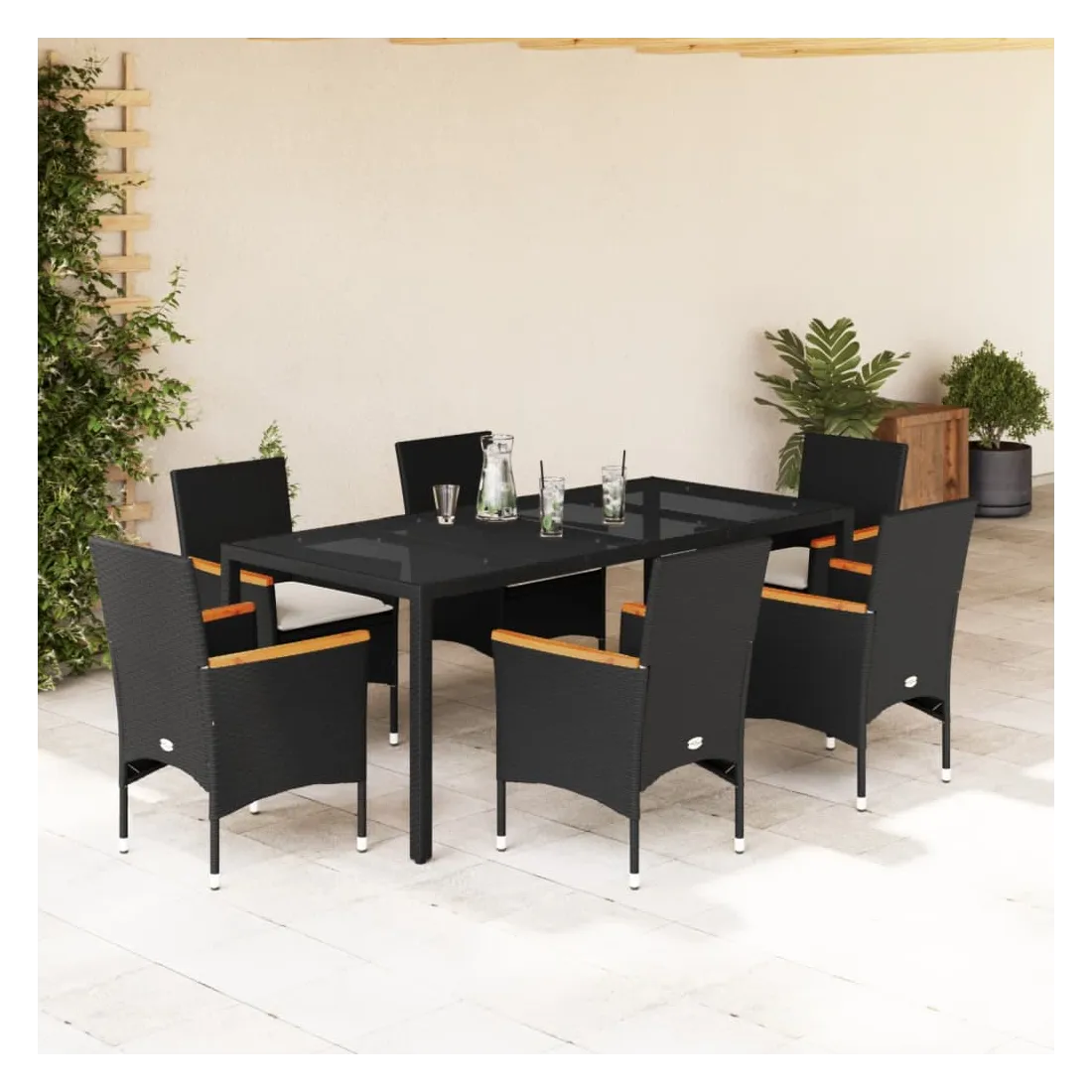 Cet ensemble de salle à manger de jardin est un excellent choix pour les repas en plein air ou pour vous détendre dans le jardin, dans l'arrière-cour ou sur la terrasse. Matériau durable : la résine tressée, également connue sous le nom de poly rotin, est un matériau synthétique solide et nécessitant peu d'entretien qui ressemble au rotin naturel. Il est léger, facile à nettoyer et couramment utilisé pour les meubles d'extérieur en raison de sa durabilité et de ses propriétés de résistance aux intempéries.Expérience d'assise confortable : cet ensemble de meubles d'extérieur, doté de coussins épais, offre une expérience d'assise confortable.Housse amovible et lavable : ces coussins de siège sont dotés de housses amovibles pour un lavage et un entretien faciles.Dessus en verre : le dessus de la table d'extérieur est fabriqué en verre trempé solide et durable, ce qui le rend facile à nettoyer avec un chiffon humide et ajoute une touche d'élégance à votre espace extérieur. Bon à savoir :Pour que vos meubles d'extérieur restent beaux, nous vous recommandons de les protéger avec une housse imperméable.