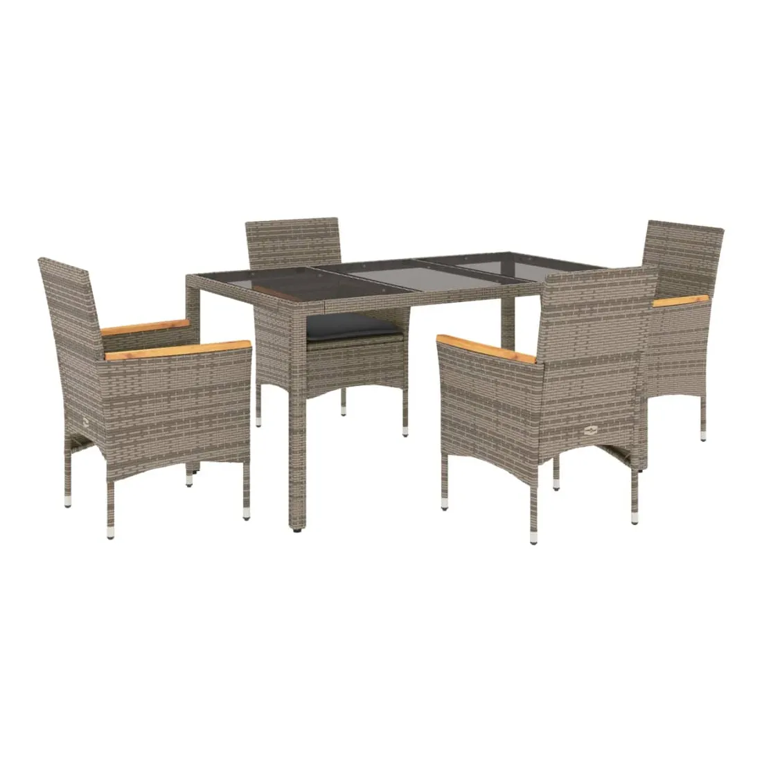 Cet ensemble de salle à manger de jardin est un excellent choix pour les repas en plein air ou pour vous détendre dans le jardin, dans l'arrière-cour ou sur la terrasse. Matériau durable : la résine tressée, également connue sous le nom de poly rotin, est un matériau synthétique solide et nécessitant peu d'entretien qui ressemble au rotin naturel. Il est léger, facile à nettoyer et couramment utilisé pour les meubles d'extérieur en raison de sa durabilité et de ses propriétés de résistance aux intempéries.Expérience d'assise confortable : cet ensemble de meubles d'extérieur, doté de coussins épais, offre une expérience d'assise confortable.Housse amovible et lavable : ces coussins de siège sont dotés de housses amovibles pour un lavage et un entretien faciles.Dessus en verre : le dessus de la table d'extérieur est fabriqué en verre trempé solide et durable, ce qui le rend facile à nettoyer avec un chiffon humide et ajoute une touche d'élégance à votre espace extérieur. Bon à savoir :Pour que vos meubles d'extérieur restent beaux, nous vous recommandons de les protéger avec une housse imperméable.