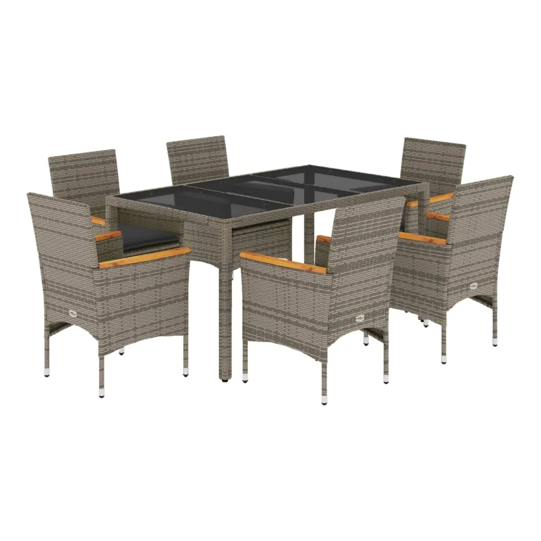 Cet ensemble de salle à manger de jardin est un excellent choix pour les repas en plein air ou pour vous détendre dans le jardin, dans l'arrière-cour ou sur la terrasse. Matériau durable : la résine tressée, également connue sous le nom de poly rotin, est un matériau synthétique solide et nécessitant peu d'entretien qui ressemble au rotin naturel. Il est léger, facile à nettoyer et couramment utilisé pour les meubles d'extérieur en raison de sa durabilité et de ses propriétés de résistance aux intempéries.Expérience d'assise confortable : cet ensemble de meubles d'extérieur, doté de coussins épais, offre une expérience d'assise confortable.Housse amovible et lavable : ces coussins de siège sont dotés de housses amovibles pour un lavage et un entretien faciles.Dessus en verre : le dessus de la table d'extérieur est fabriqué en verre trempé solide et durable, ce qui le rend facile à nettoyer avec un chiffon humide et ajoute une touche d'élégance à votre espace extérieur. Bon à savoir :Pour que vos meubles d'extérieur restent beaux, nous vous recommandons de les protéger avec une housse imperméable.