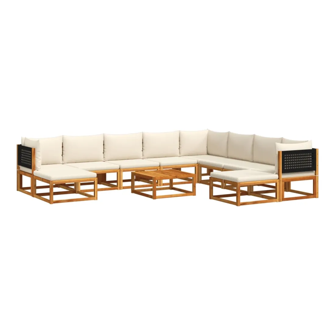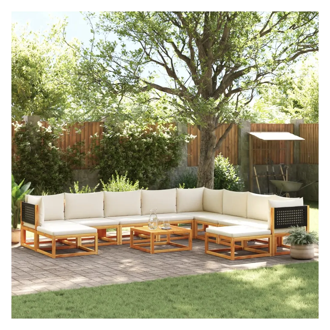 Ensemble de canapés de jardin 11 pièces avec coussins en bois d'acacia et rotin