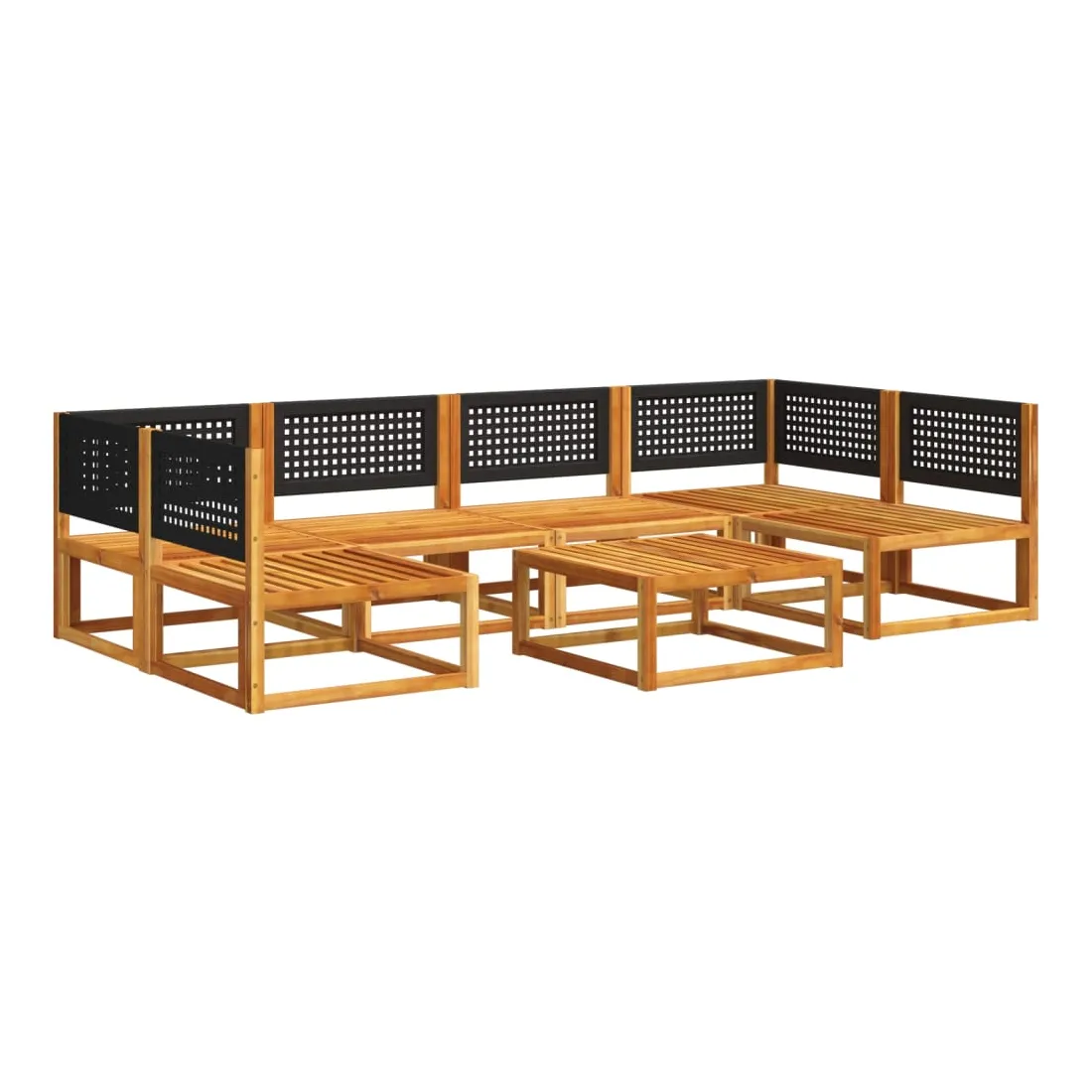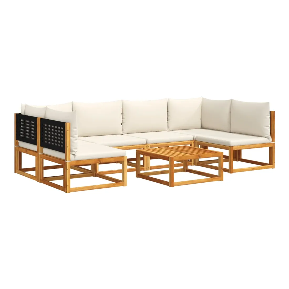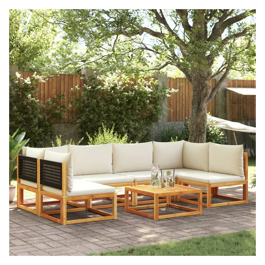 Ensemble de canapés de jardin 7 pièces avec coussins en bois d'acacia et rotin