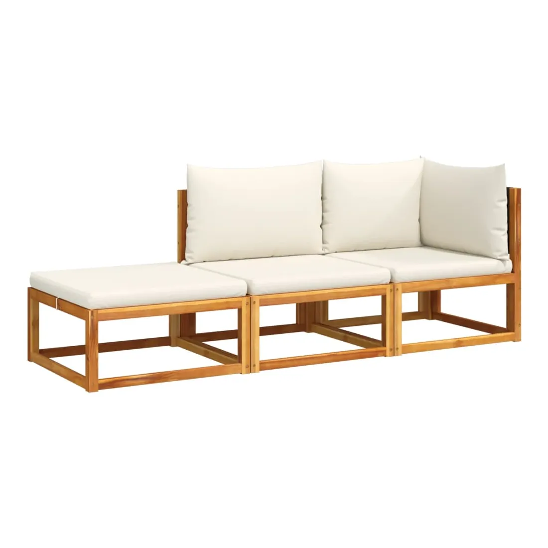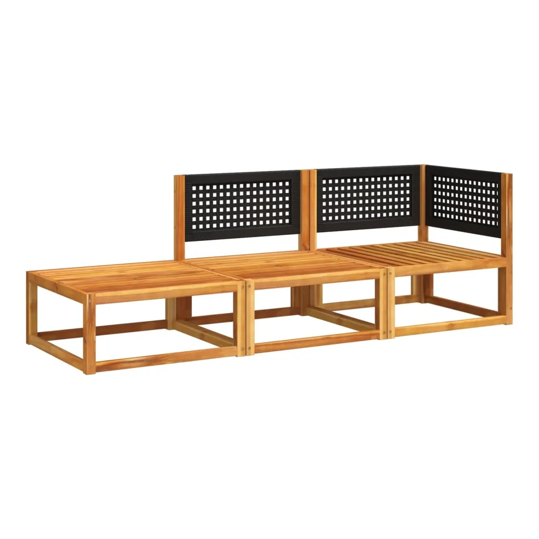 Ensemble de canapés de jardin 3 pièces avec coussins en bois d'acacia et rotin