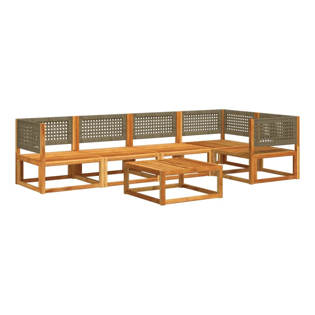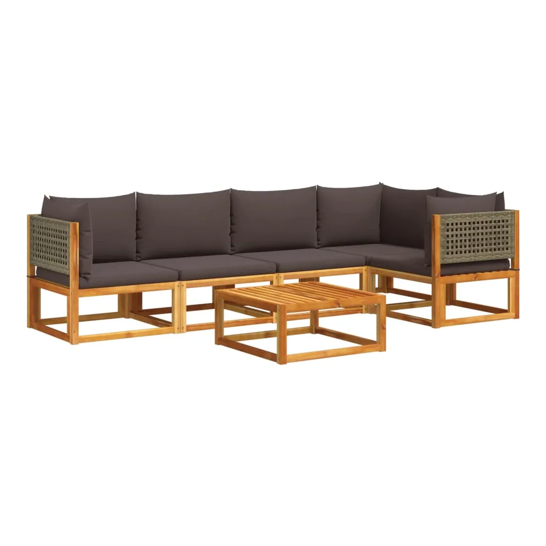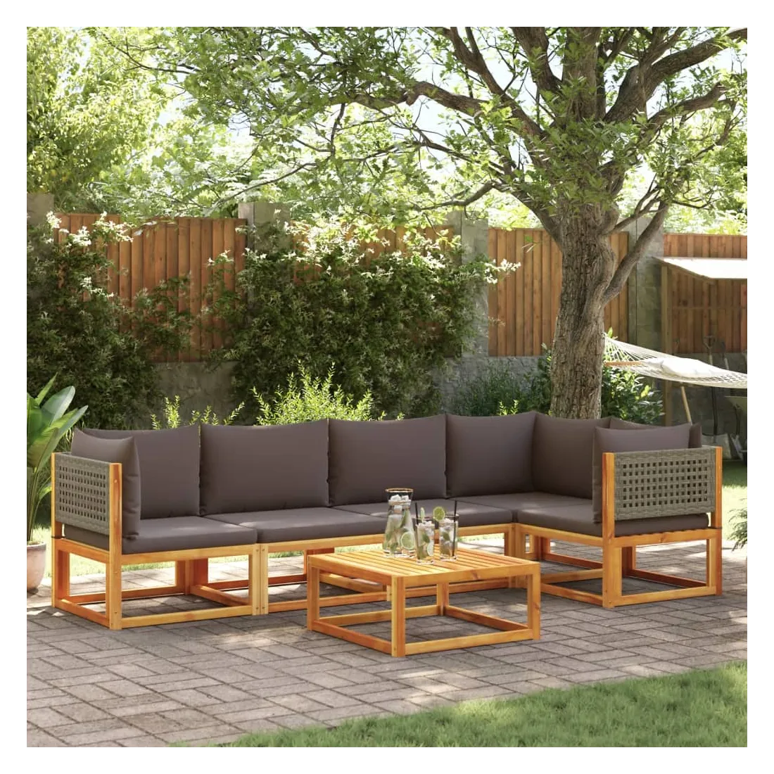 Ensemble de canapés de jardin 6 pièces avec coussins en bois d'acacia et rotin