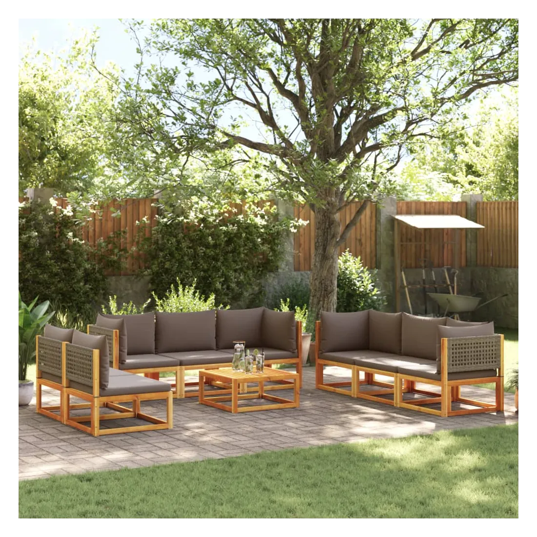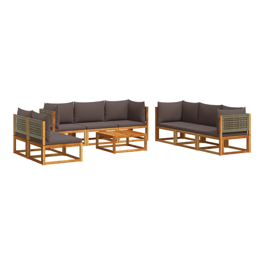 Ensemble de canapés de jardin 9 pièces avec coussins en bois d'acacia et rotin