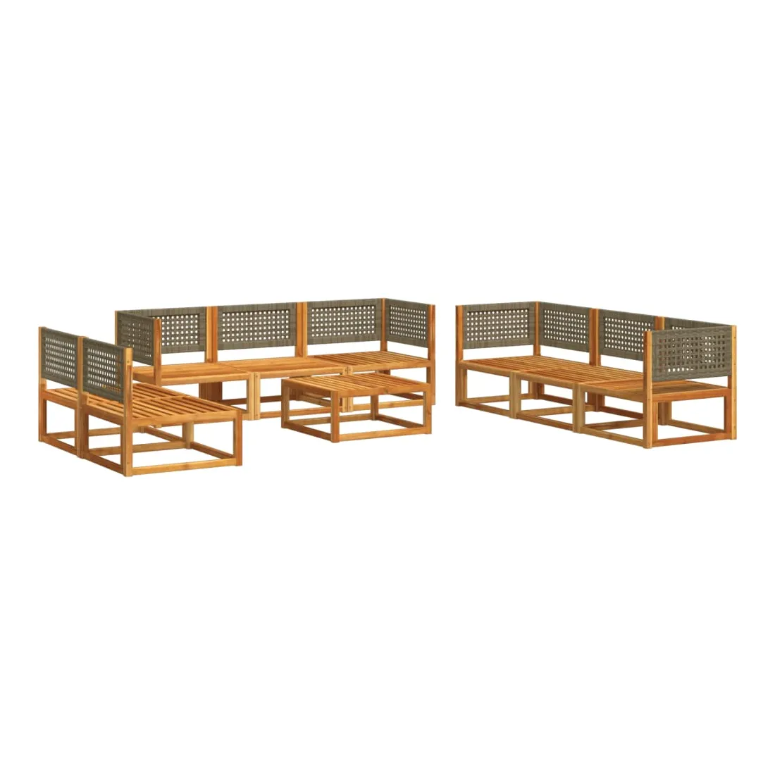 vidaXLCet ensemble de canapé de jardin avec dossiers en rotin tressé est le complément parfait à votre jardin, terrasse ou patio, offrant un espace confortable et accueillant pour discuter en famille et entre amis ou simplement se détendre et profiter du plein air. Dossier tressé élégant : Le canapé de jardin est doté de dossiers en rotin finement travaillés, ajoutant une touche sophistiquée à tout espace extérieur.Cadre robuste et stable : Le bois d'acacia massif est connu pour sa résistance et sa durabilité. Ses couleurs variées et ses motifs de grain uniques lui confèrent une apparence attrayante. Avec une bonne stabilité et une bonne résistance aux intempéries, il est idéal pour la fabrication de meubles d'intérieur et d'extérieur. Expérience d'assise confortable : Ce mobilier d'extérieur, doté de coussins épais et rembourrés, offre une expérience d'assise confortable.Bien ventilé et anti-accumulation : La conception à lattes favorise une circulation d'air optimale et empêche efficacement l'accumulation d'eau, garantissant un mobilier de jardin sec et confortable.Housse amovible et lavable : Ces coussins d'assise sont dotés de housses amovibles pour un lavage et un entretien faciles.Conception modulaire : Ce mobilier d'extérieur a une conception modulaire, ce qui le rend entièrement flexible et facile à déplacer, vous permettant ainsi de créer un aménagement de mobilier d'extérieur personnalisé. Bon à savoir :Pour que votre mobilier d'extérieur reste beau, nous vous recommandons de le protéger avec une housse imperméable.