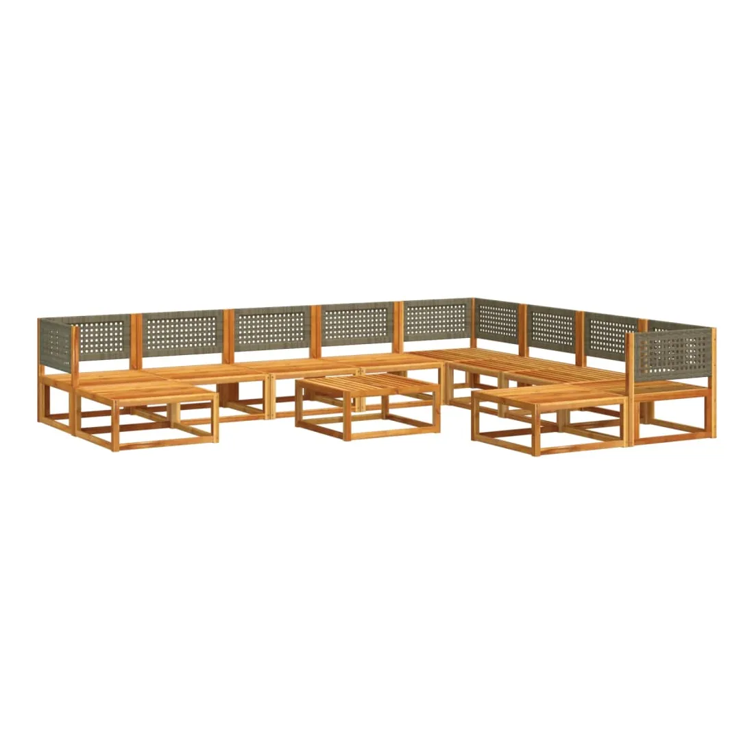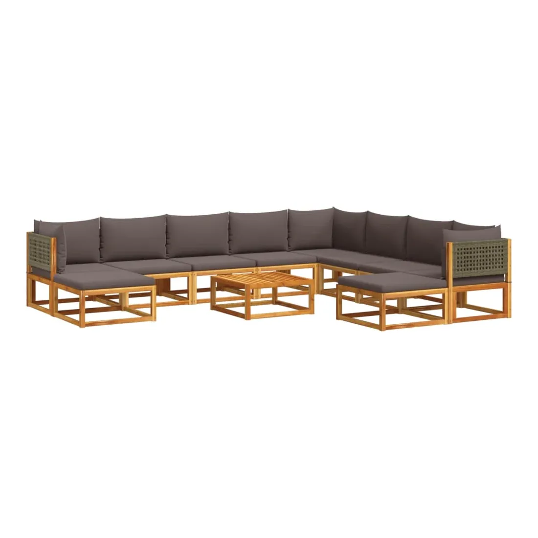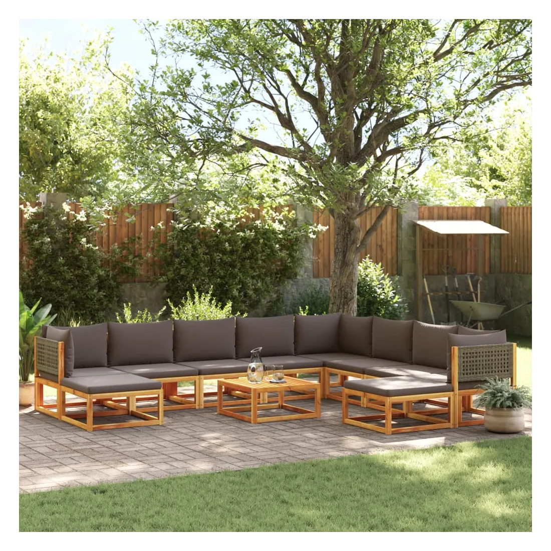 Ensemble de canapés de jardin 11 pièces avec coussins en bois d'acacia et rotin