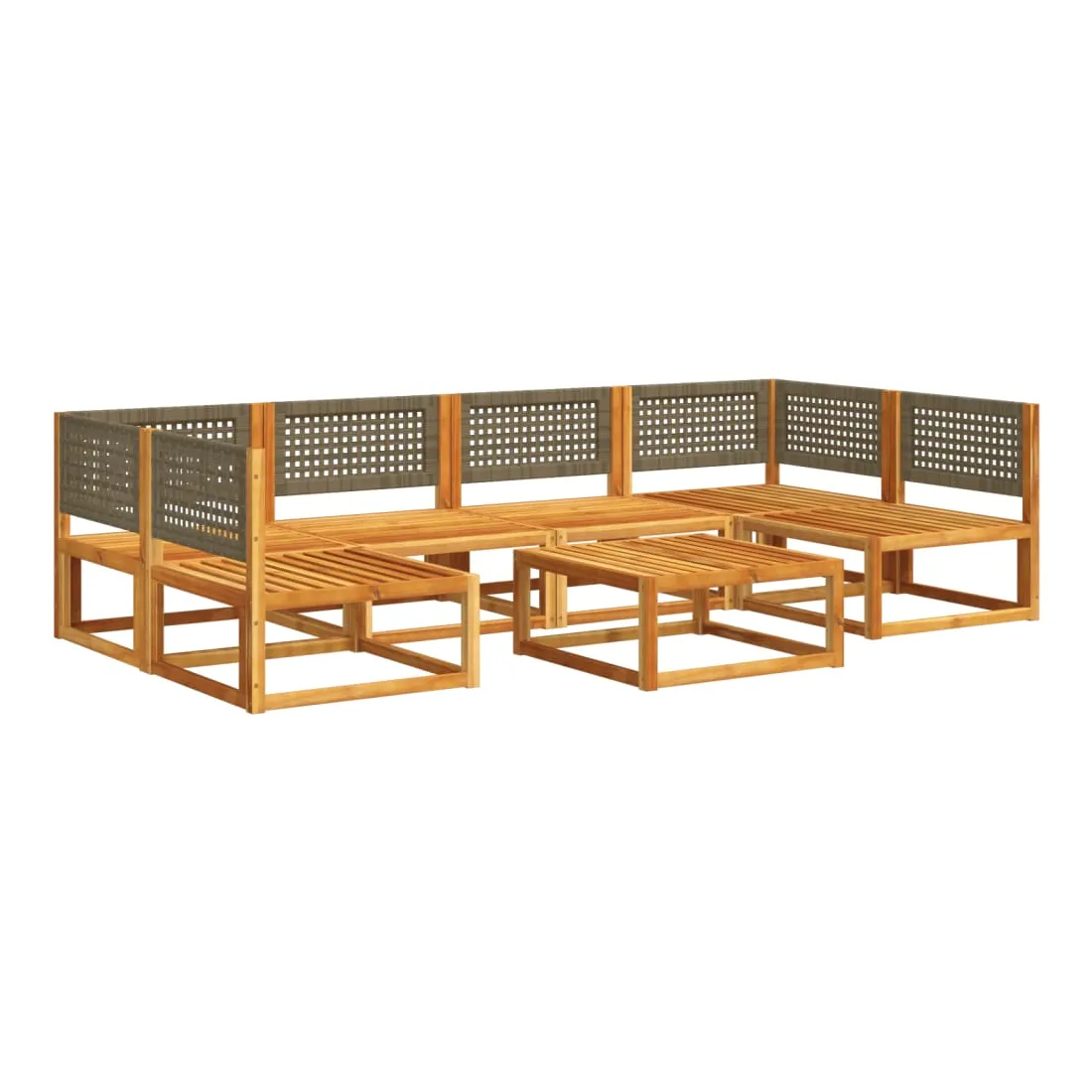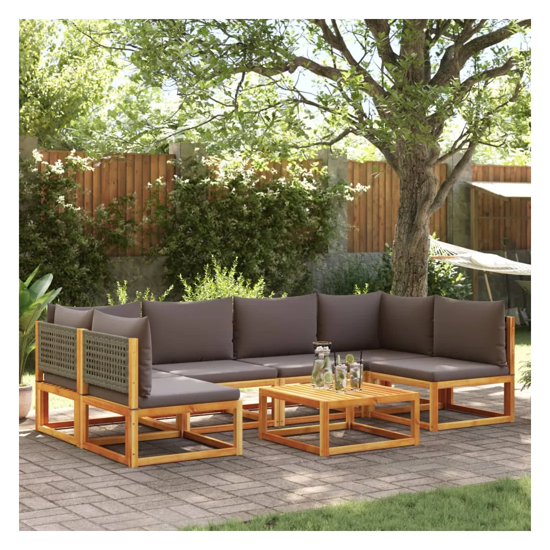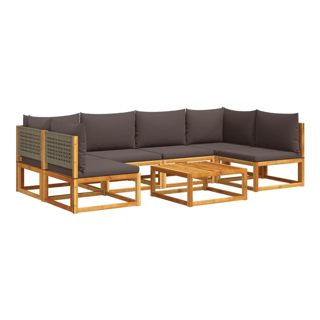 Ensemble de canapés de jardin 7 pièces avec coussins en bois d'acacia et rotin