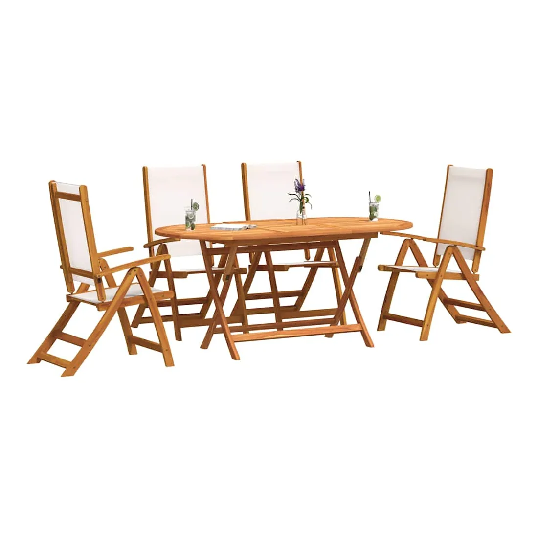 - Matériau : bois d'acacia massif avec finition à l'huile, textilène
