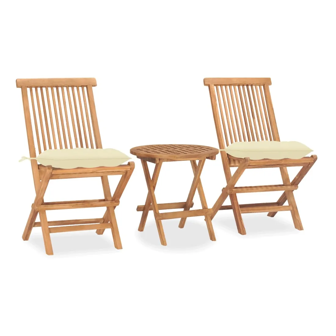 Ensemble à manger d'extérieur pliable avec coussin 3 pcs Teck