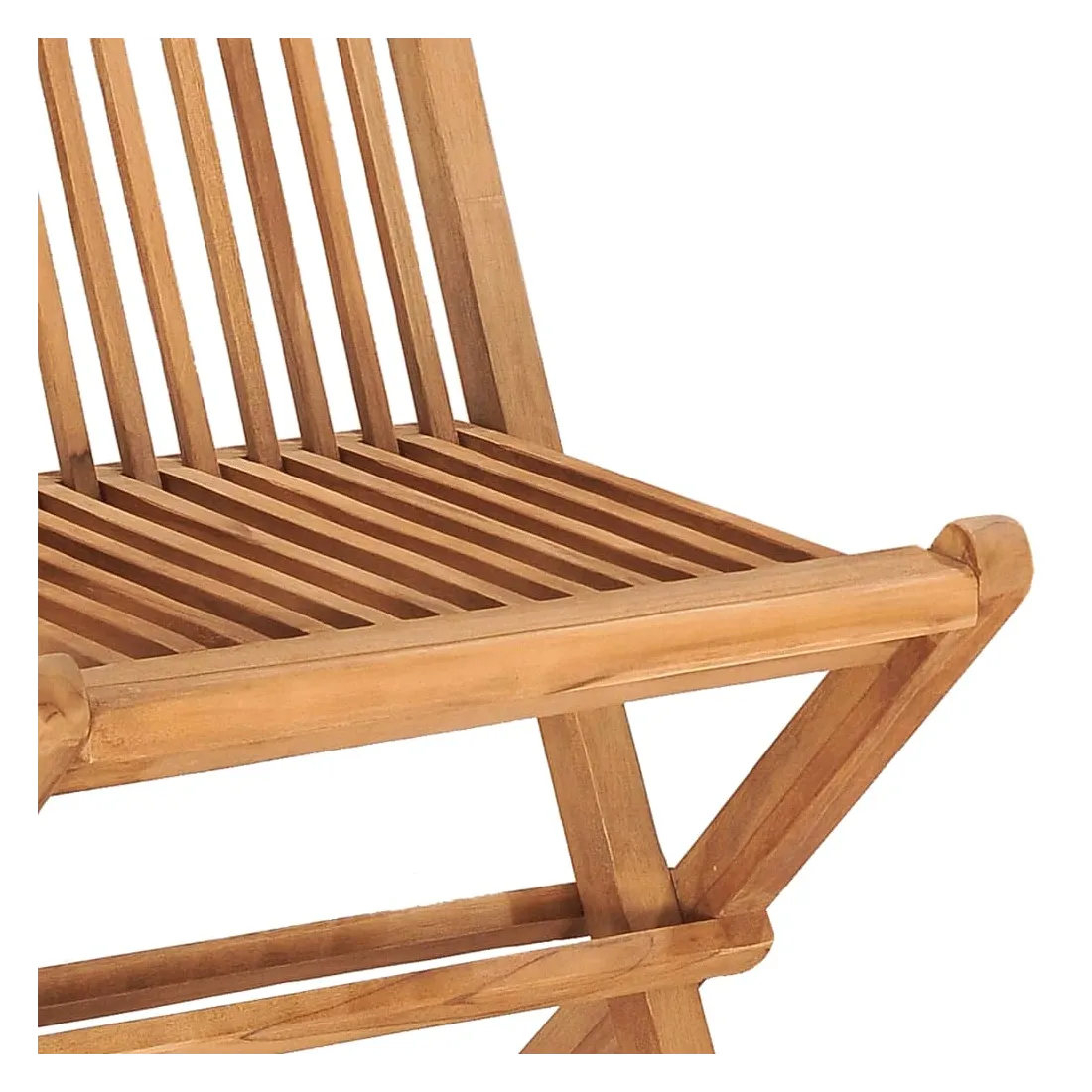 vidaXLCet ensemble de salle à manger d'extérieur en bois est spécialement conçu pour être le point de mire de votre jardin, terrasse ou patio. Fabriquée en bois dur de teck extrêmement durable, cette pièce de meuble en teck a été chevronnée, séchée au four puis finement poncée pour lui donner un aspect très lisse. Le bois de teck est connu pour sa résistance exceptionnelle aux intempéries, ce qui le rend bien plus adapté aux meubles de jardin que tout autre type de bois. Le bois de teck est le choix idéal si vous souhaitez acheter une pièce de meubles de jardin durable. La table de salle à manger et les chaises peuvent être repliées pour économiser de l’espace lorsqu'elles ne sont pas utilisées. Le coussin inclus est plus qu'un supplément pratique; il a également une fonction décorative.