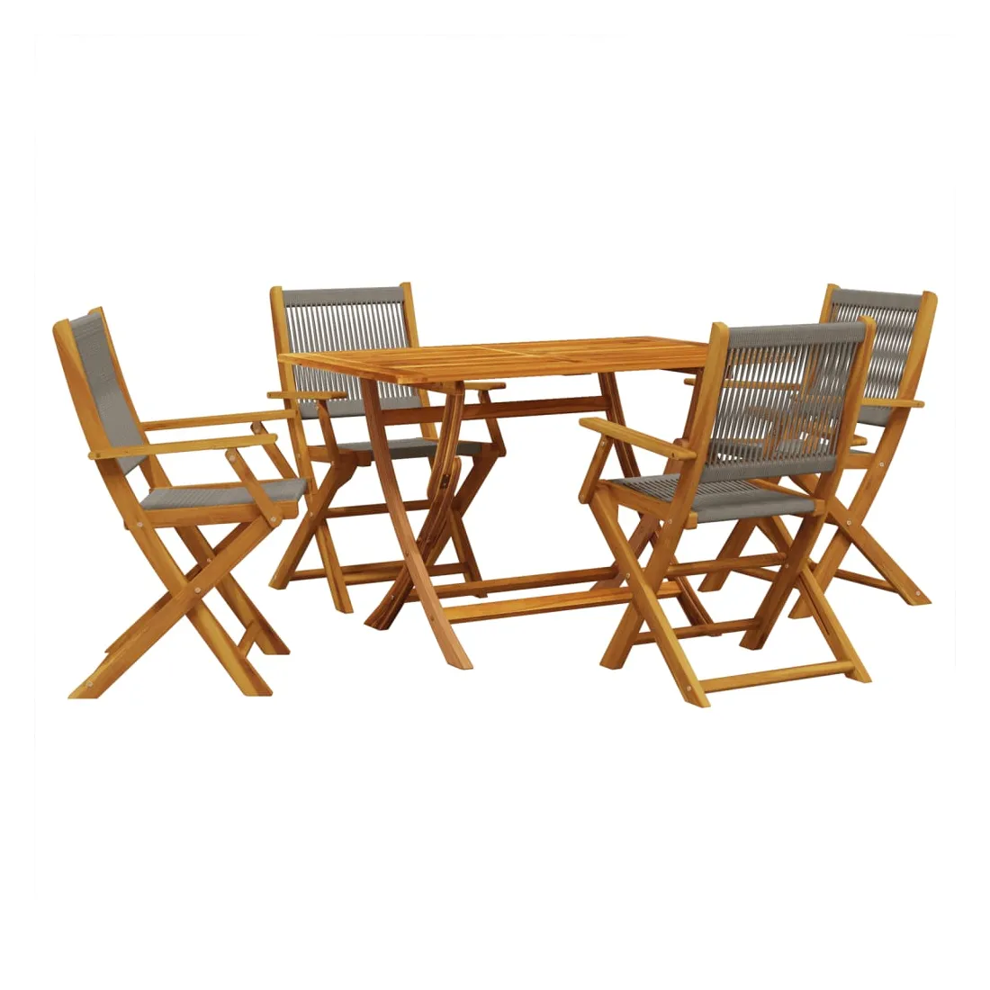 Cet ensemble de salle à manger de jardin est un excellent choix pour les repas en plein air ou pour vous détendre dans le jardin, dans l'arrière-cour ou sur la terrasse. Robuste et stable : le bois d'acacia massif est connu pour sa solidité et sa durabilité. Ses couleurs variées et ses grains uniques lui confèrent un aspect attrayant. Sa stabilité et sa résistance aux intempéries en font un matériau idéal pour la fabrication de meubles d'intérieur et d'extérieur.Conception pratique : la main courante en bois, pratique et plate, vous permet de poser vos mains dessus tout en profitant d'un moment en plein air.Dessus de table robuste : la table d'extérieur offre un excellent support pour accueillir vos boissons, collations, corbeilles de fruits et vos décorations préférées.Design pliable : la table et les chaises de salle à manger d'extérieur peuvent être facilement repliées lorsqu'elles ne sont pas utilisées pour faciliter le rangement et le transport. Bon à savoir :Pour que vos meubles d'extérieur restent beaux, nous vous recommandons de les protéger avec une housse imperméable.