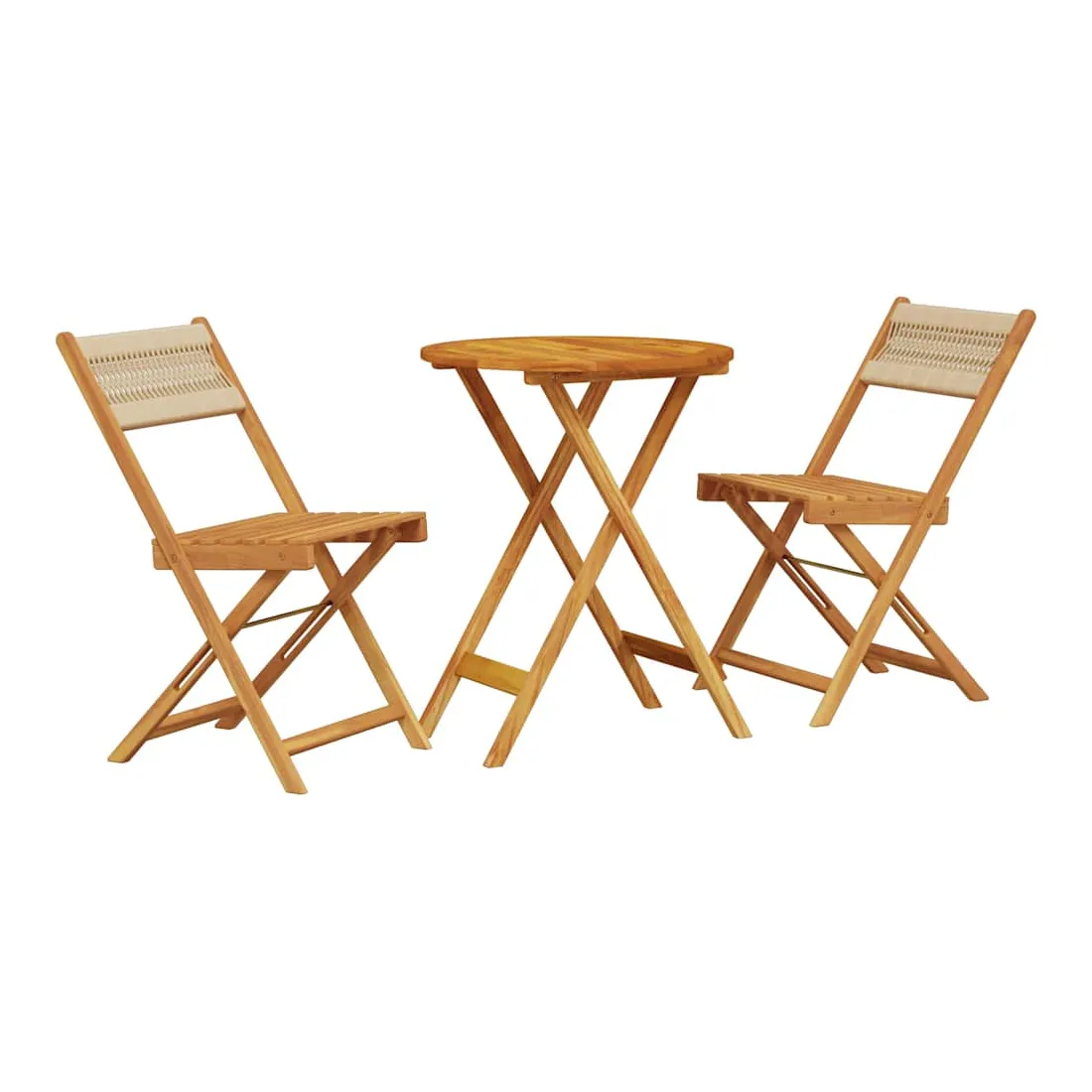 Savourez une tasse de café ou discutez avec votre famille et vos amis dans le jardin, l'arrière-cour ou sur le balcon avec cet ensemble de bistro ! Robuste et stable : le bois d'acacia massif est connu pour sa solidité et sa durabilité. Ses couleurs variées et ses grains uniques lui confèrent un aspect attrayant. Sa stabilité et sa résistance aux intempéries en font un matériau idéal pour la fabrication de meubles d'intérieur et d'extérieur.Conception pratique : la chaise d'extérieur ne comporte pas d'accoudoir, mais uniquement un dossier, ce qui vous permet d'être plus libre de vos mouvements tout en bénéficiant d'un grand confort.Dessus de table robuste : la table d'extérieur offre un excellent support pour accueillir vos boissons, collations, corbeilles de fruits et vos décorations préférées.Design pliable : la table et les chaises de salle à manger d'extérieur peuvent être facilement repliées lorsqu'elles ne sont pas utilisées pour faciliter le rangement et le transport. Bon à savoir :Pour que vos meubles d'extérieur restent beaux, nous vous recommandons de les protéger avec une housse imperméable.