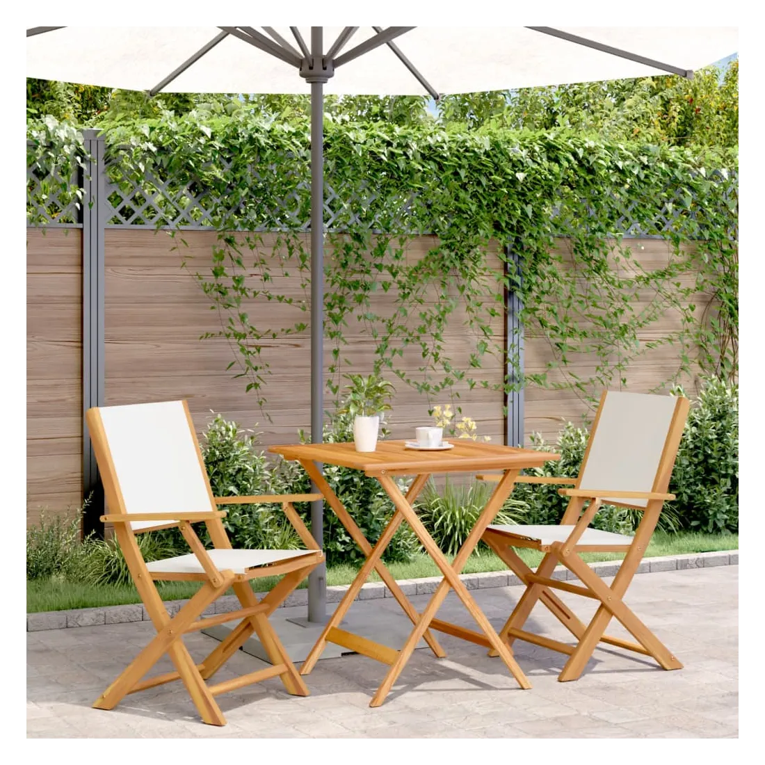 Savourez une tasse de café ou discutez avec votre famille et vos amis dans le jardin, l'arrière-cour ou sur le balcon avec cet ensemble de bistro ! Robuste et stable : le bois d'acacia massif est connu pour sa solidité et sa durabilité. Ses couleurs variées et ses grains uniques lui confèrent un aspect attrayant. Sa stabilité et sa résistance aux intempéries en font un matériau idéal pour la fabrication de meubles d'intérieur et d'extérieur.Conception pratique : la main courante en bois, pratique et plate, vous permet de poser vos mains dessus tout en profitant d'un moment en plein air.Dessus de table robuste : la table d'extérieur offre un excellent support pour accueillir vos boissons, collations, corbeilles de fruits et vos décorations préférées.Design pliable : la table et les chaises de salle à manger d'extérieur peuvent être facilement repliées lorsqu'elles ne sont pas utilisées pour faciliter le rangement et le transport. Bon à savoir :Pour que vos meubles d'extérieur restent beaux, nous vous recommandons de les protéger avec une housse imperméable.