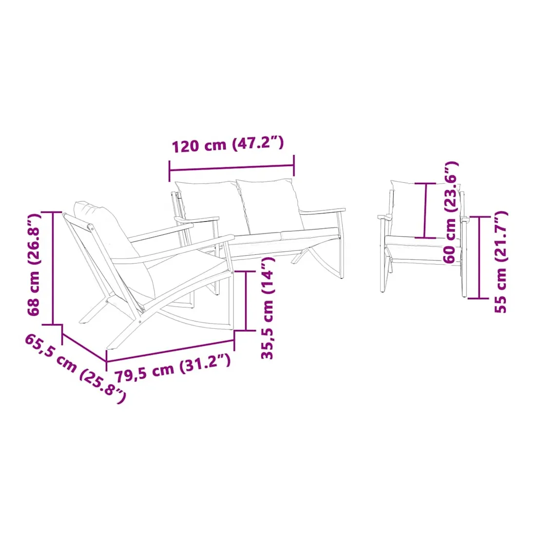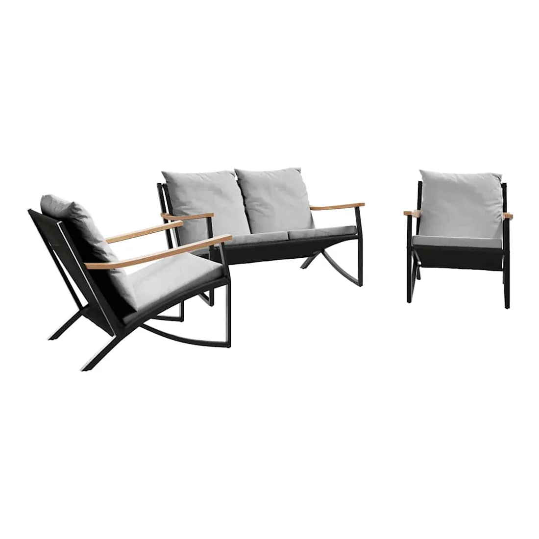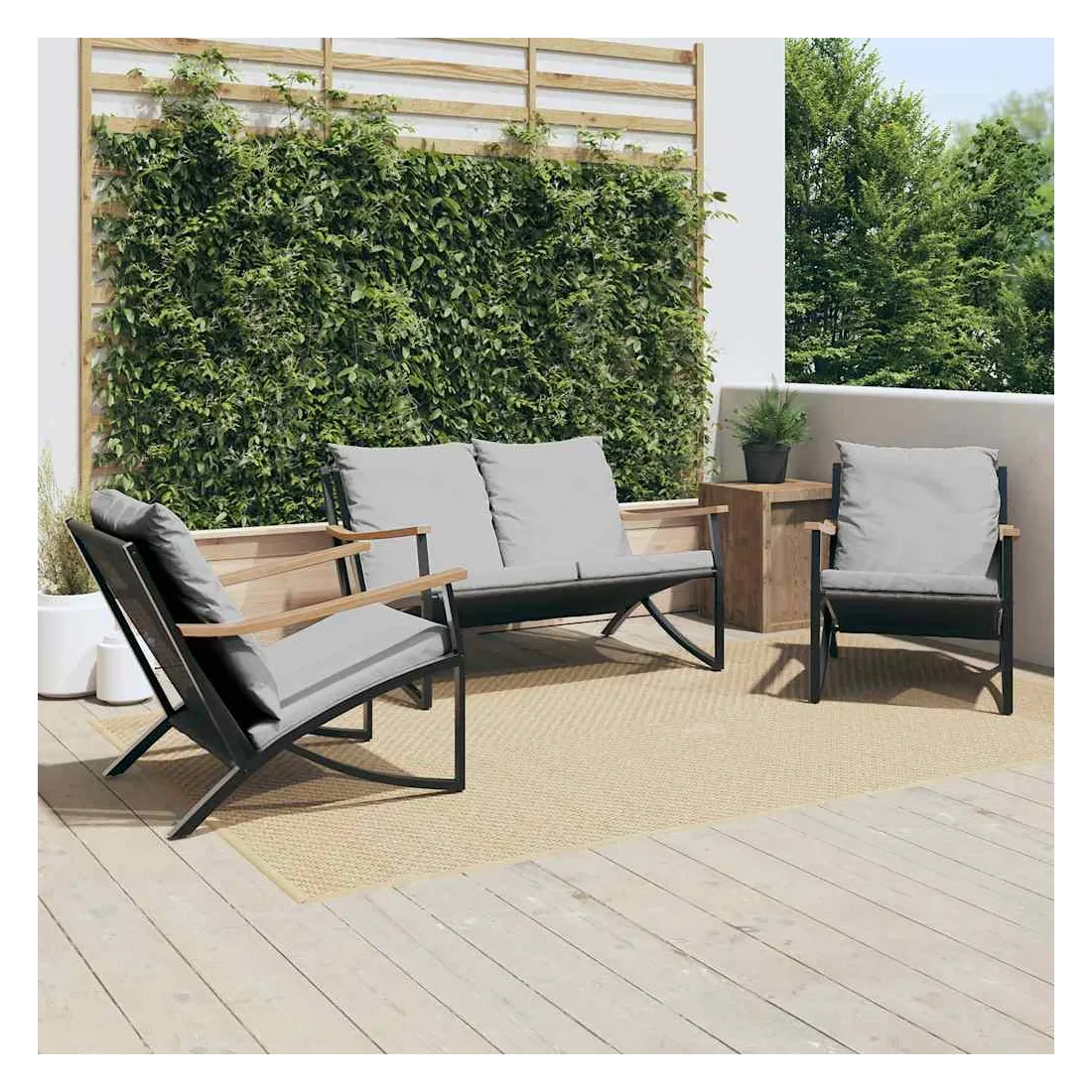 Cet ensemble de meubles de balcon est le complément parfait de votre arrière-cour, terrasse ou patio, offrant un espace confortable et accueillant pour discuter avec la famille et les amis ou simplement se détendre et profiter de l'extérieur. Durable et longue durée de vie : le tissu textilène est apprécié pour sa durabilité, résistance à l'eau et à la décoloration, facilité d'entretien et protection contre les rayons UV et la moisissure, ce qui en fait un choix idéal pour le meuble d'extérieur et les structures d'ombrage.Expérience d'assise confortable : ce mobilier d'extérieur, doté de coussins épais, offre une expérience d'assise confortable.Housse amovible et lavable : ces coussins de siège sont dotés de housses amovibles pour un lavage et un entretien faciles.Cadre robuste et stable : le cadre en acier enduit de poudre assure la solidité et la stabilité du meuble de jardin pour une utilisation quotidienne à l'extérieur. Bon à savoir :Pour que vos meubles d'extérieur restent beaux, nous vous recommandons de les protéger avec une housse imperméable.