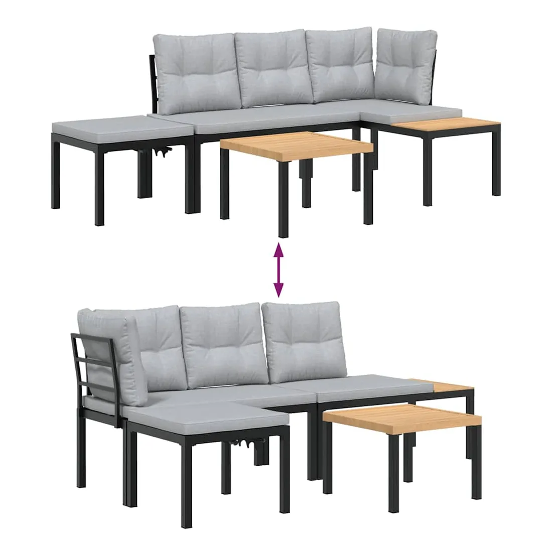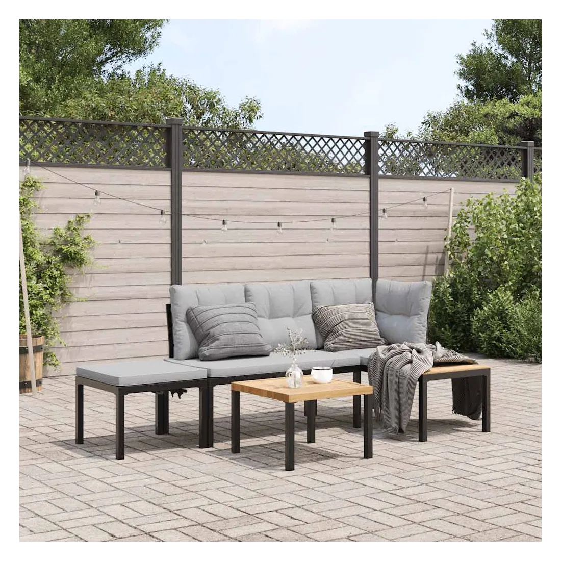 Cet ensemble de banc de jardin est parfait pour une utilisation à l'extérieur et il est conçu pour être le point central de votre jardin, terrasse ou patio, etc. Cadre robuste et stable : le cadre en acier enduit de poudre est solide, stable, durable et résistant à la corrosion et aux intempéries, ce qui garantit des performances durables.Table d'appoint pratique : ce mobilier d'extérieur comprend une table d'appoint, offrant un endroit pratique pour garder vos essentiels à portée de main.Expérience d'assise confortable : ce mobilier d'extérieur, doté de coussins épais, offre une expérience d'assise confortable.Dessus robuste : le dessus robuste de la table de patio est idéal pour placer vos boissons ou tout autre article dont vous avez besoin à portée de main.Panneau de siège réglable : le panneau de siège du tabouret d'extérieur peut être relevé selon vos préférences. Bon à savoir :Pour que vos meubles d'extérieur restent beaux, nous vous recommandons de les protéger avec une housse imperméable.