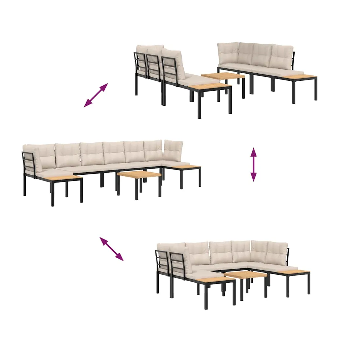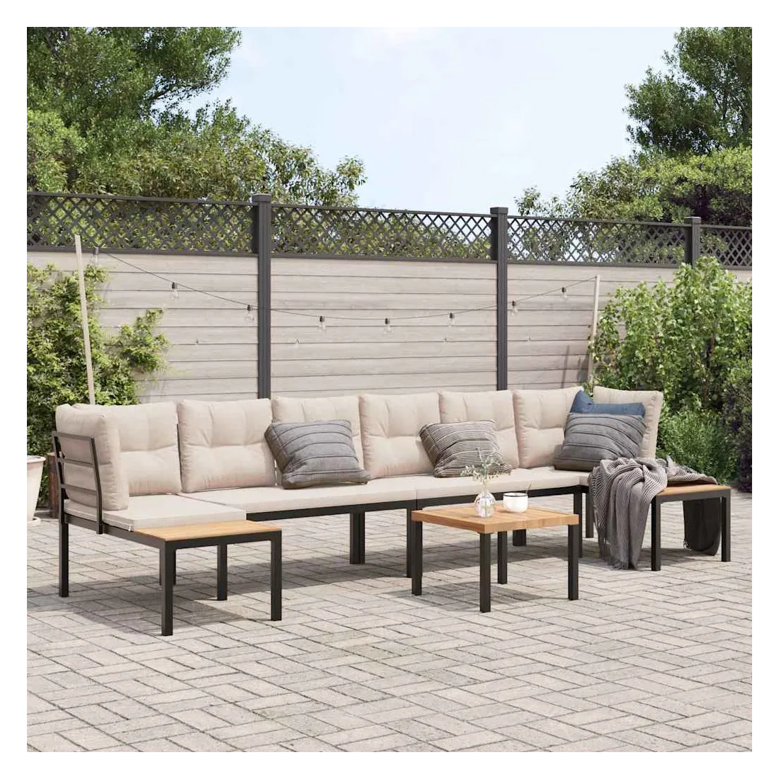 Cet ensemble de canapés de jardin est le complément parfait de votre arrière-cour, terrasse ou patio, offrant un espace confortable et accueillant pour discuter avec la famille et les amis ou simplement se détendre et profiter de l'extérieur. Cadre robuste et stable : le cadre en acier enduit de poudre est solide, stable, durable et résistant à la corrosion et aux intempéries, ce qui garantit des performances durables.Dessus robuste : le dessus robuste de la table de patio est idéal pour placer vos boissons ou tout autre article dont vous avez besoin à portée de main.Expérience d'assise confortable : ce mobilier d'extérieur, doté de coussins épais, offre une expérience d'assise confortable. Housse amovible et lavable : ces coussins de siège sont dotés de housses amovibles pour un lavage et un entretien faciles.Conception modulaire : cet ensemble de meubles d'extérieur a une conception modulaire, ce qui le rend complètement flexible et facile à déplacer, afin que vous puissiez créer un agencement de meubles d'extérieur personnalisé. Bon à savoir :Pour que vos meubles d'extérieur restent beaux, nous vous recommandons de les protéger avec une housse imperméable.