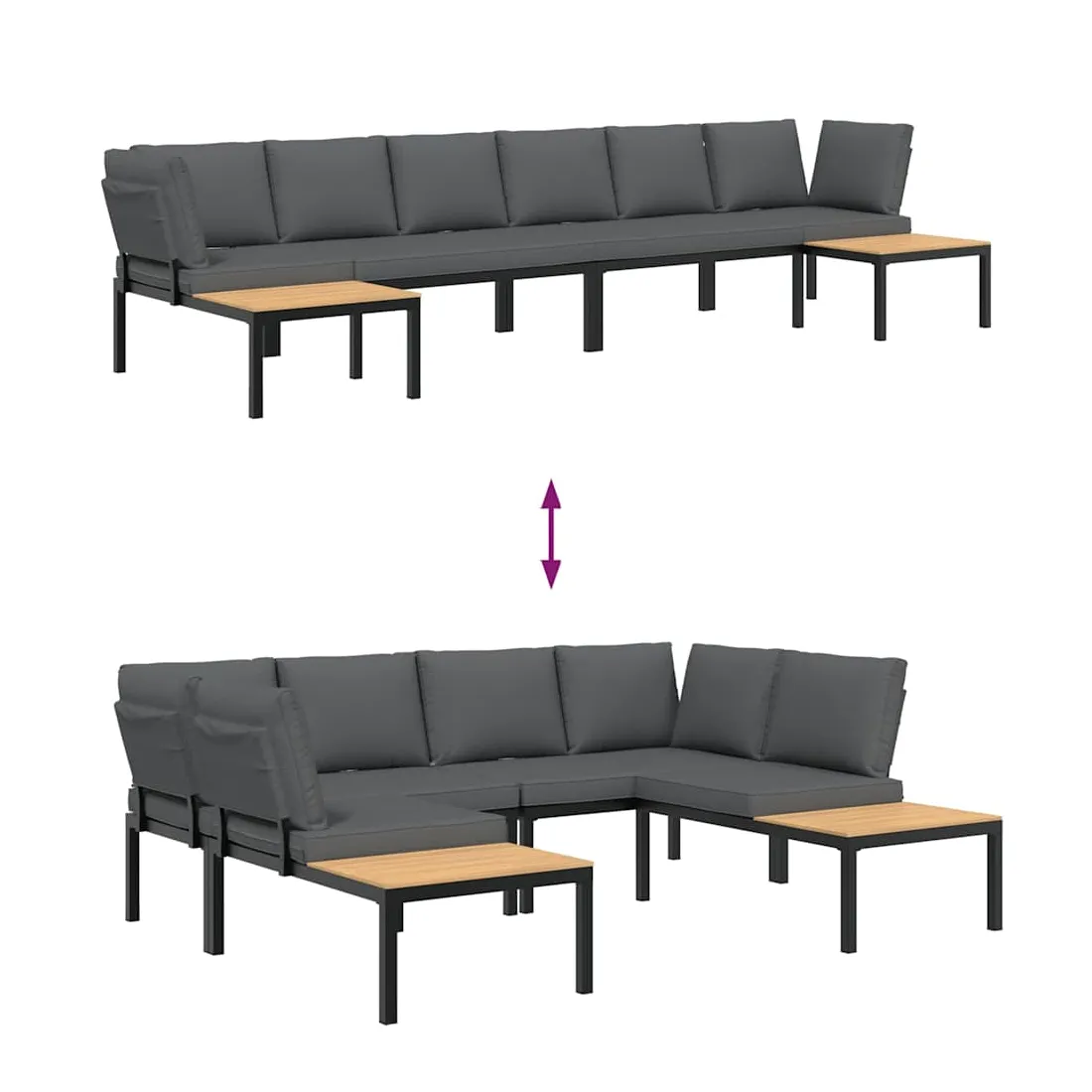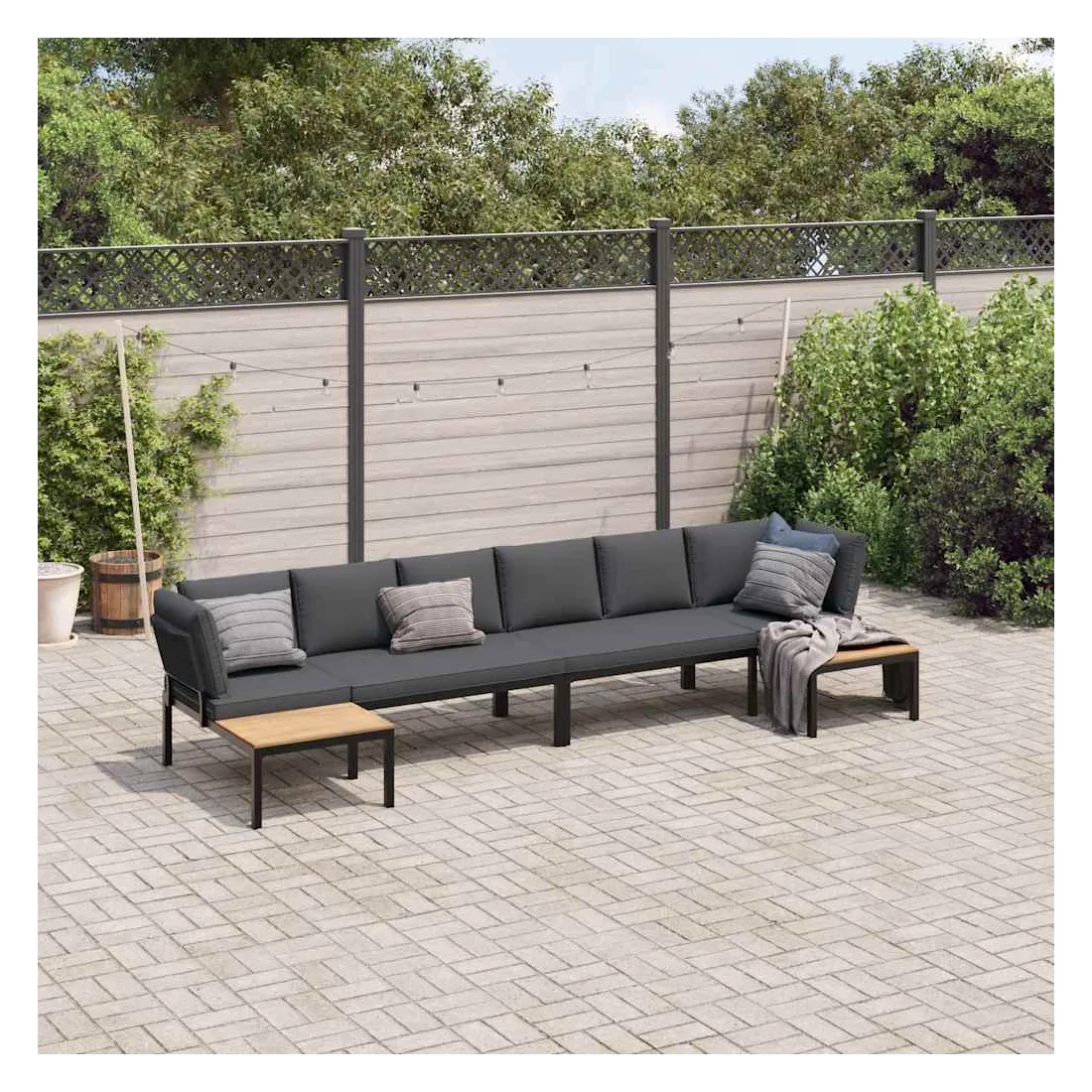 Cet ensemble de canapés de jardin est le complément parfait de votre arrière-cour, terrasse ou patio, offrant un espace confortable et accueillant pour discuter avec la famille et les amis ou simplement se détendre et profiter de l'extérieur. Durable et robuste : l'ensemble de canapés d'extérieur est fabriqué en aluminium, ce qui le rend résistant et durable.Table d'appoint pratique : ce mobilier d'extérieur comprend une table d'appoint, offrant un endroit pratique pour garder vos essentiels à portée de main.Expérience d'assise confortable : ce mobilier d'extérieur, doté de coussins épais, offre une expérience d'assise confortable. Housse amovible et lavable : ces coussins de siège sont dotés de housses amovibles pour un lavage et un entretien faciles.Conception modulaire : cet ensemble de meubles d'extérieur a une conception modulaire, ce qui le rend complètement flexible et facile à déplacer, afin que vous puissiez créer un agencement de meubles d'extérieur personnalisé. Bon à savoir :Pour que vos meubles d'extérieur restent beaux, nous vous recommandons de les protéger avec une housse imperméable.
