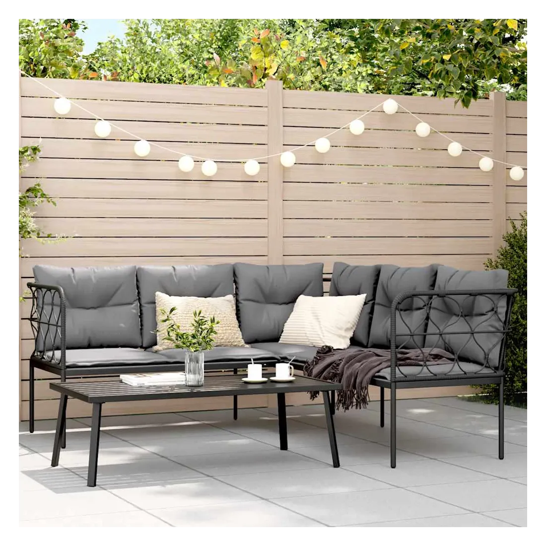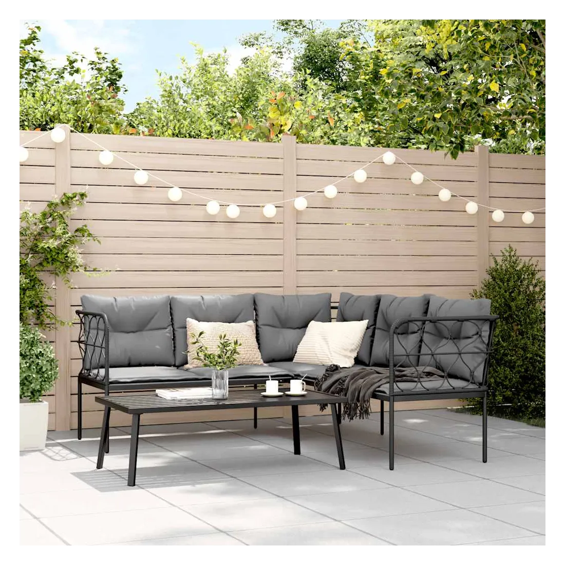 Cet ensemble de canapés de jardin est le complément parfait de votre jardin, terrasse ou patio, offrant un espace confortable et accueillant pour discuter avec la famille et les amis ou simplement se détendre et profiter de l'extérieur. Cadre robuste et stable : le cadre en acier enduit de poudre assure la solidité et la stabilité du meuble de jardin pour une utilisation quotidienne à l'extérieur.Durable et longue durée de vie : le tissu textilène est apprécié pour sa durabilité, résistance à l'eau et à la décoloration, facilité d'entretien et protection contre les rayons UV et la moisissure, ce qui en fait un choix idéal pour le meuble d'extérieur et les structures d'ombrage.Expérience d'assise confortable : ce mobilier d'extérieur, doté de coussins épais, offre une expérience d'assise confortable.Housse amovible et lavable : ces coussins de siège sont dotés de housses amovibles pour un lavage et un entretien faciles.Dessus robuste : le dessus robuste de la table de patio est idéal pour placer vos boissons ou tout autre article dont vous avez besoin à portée de main. Bon à savoir :Pour que vos meubles d'extérieur restent beaux, nous vous recommandons de les protéger avec une housse imperméable.