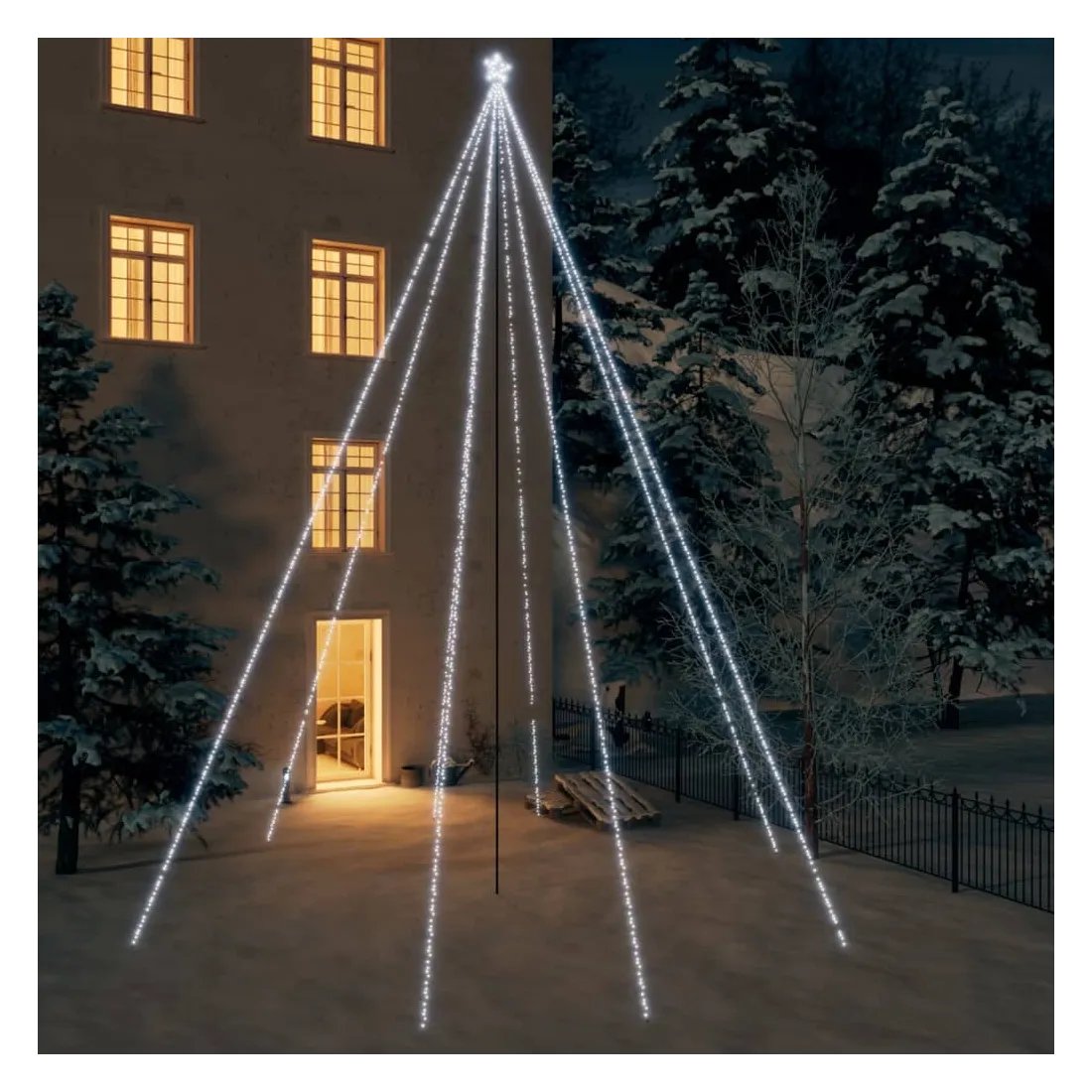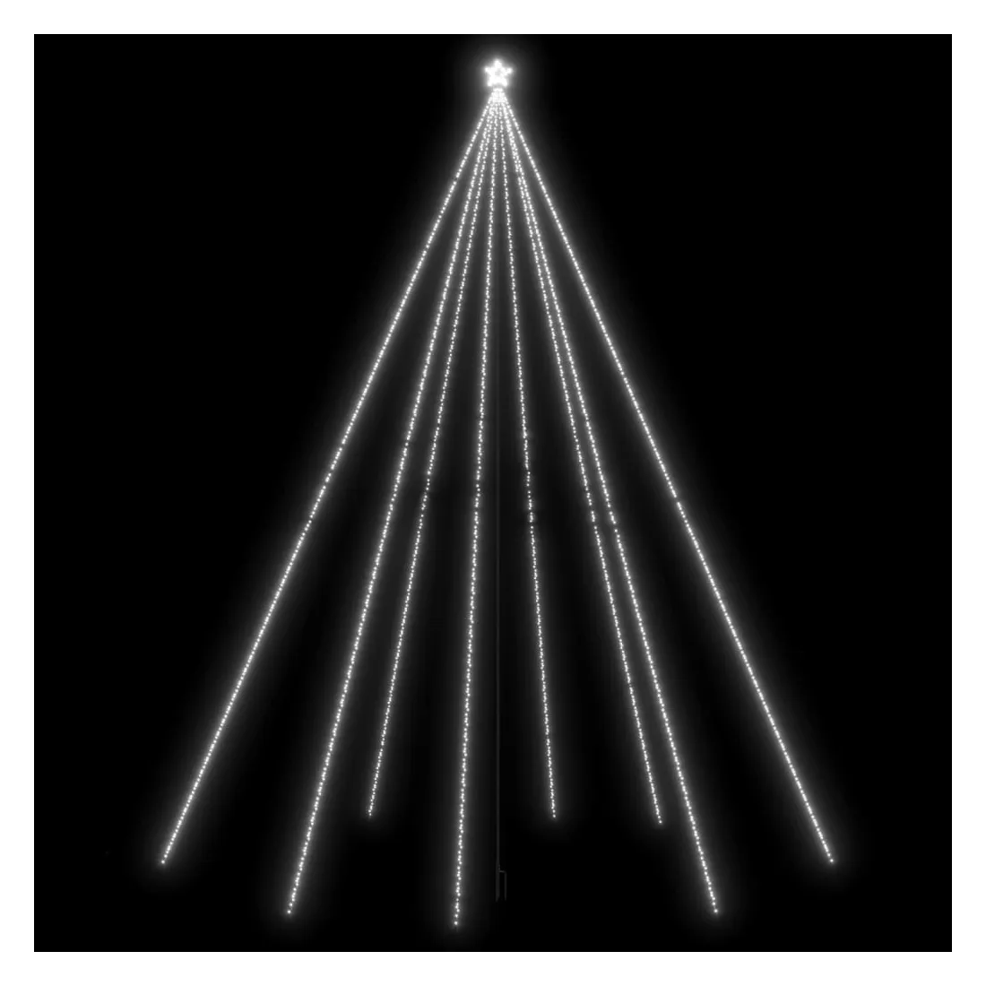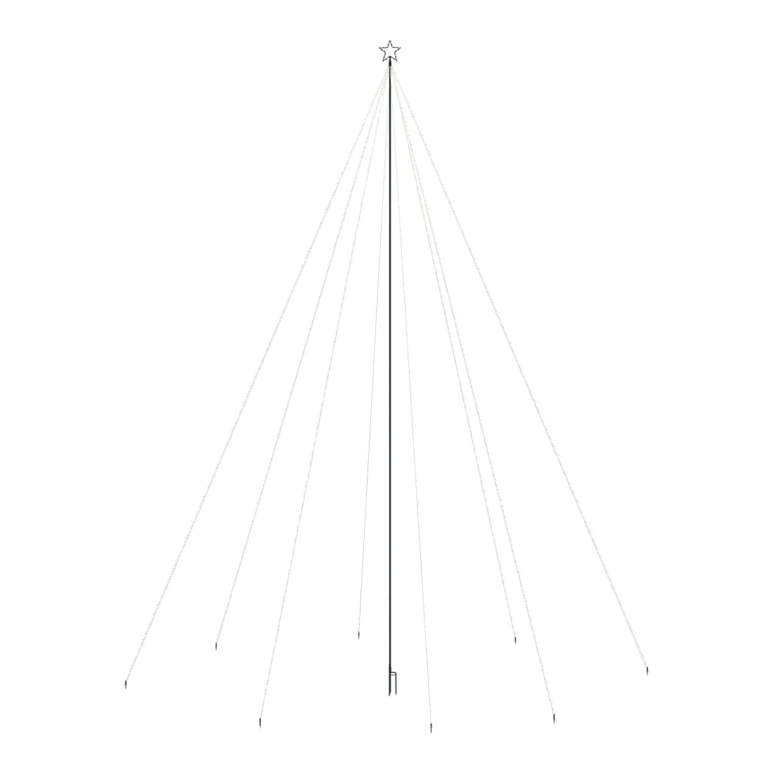 Crée ton propre pays des merveilles en ajoutant de la couleur d'une manière unique et moderne avec le sapin de Noël LED. Elles sont parfaites pour les espaces intérieurs et extérieurs qui ont besoin d'une touche spéciale pour les vacances. Cette lumière au design de cascade est pré-éclairée par 1300 LED en 8 chaînes et comprend une étoile artisanale à la cime. Elle économise de l'énergie, sont très lumineuses et durables. Conçu avec 8 effets d'éclairage différents : une combinaison de tous les effets, lueur lente, scintillement/clignotement, en vague, chasse/eau courante, séquentiel, constant et atténuation lente, elle s'illumine magnifiquement et crée une ambiance de vacances magique. Elle comprend une rallonge très longue de 15 m qui est suffisamment longue pour que vous puissiez la connecter à l'extérieur. Les lignes principales et les fils ont un indice IP44, c'est-à-dire qu'ils sont résistants à l'eau. Le poteau de support central et les piquets de sol sont inclus dans la livraison pour faciliter la suspension et la fixation. Remarque : veuillez ajouter une corde à travers le cercle et l'attacher au sol pour un soutien supplémentaire.