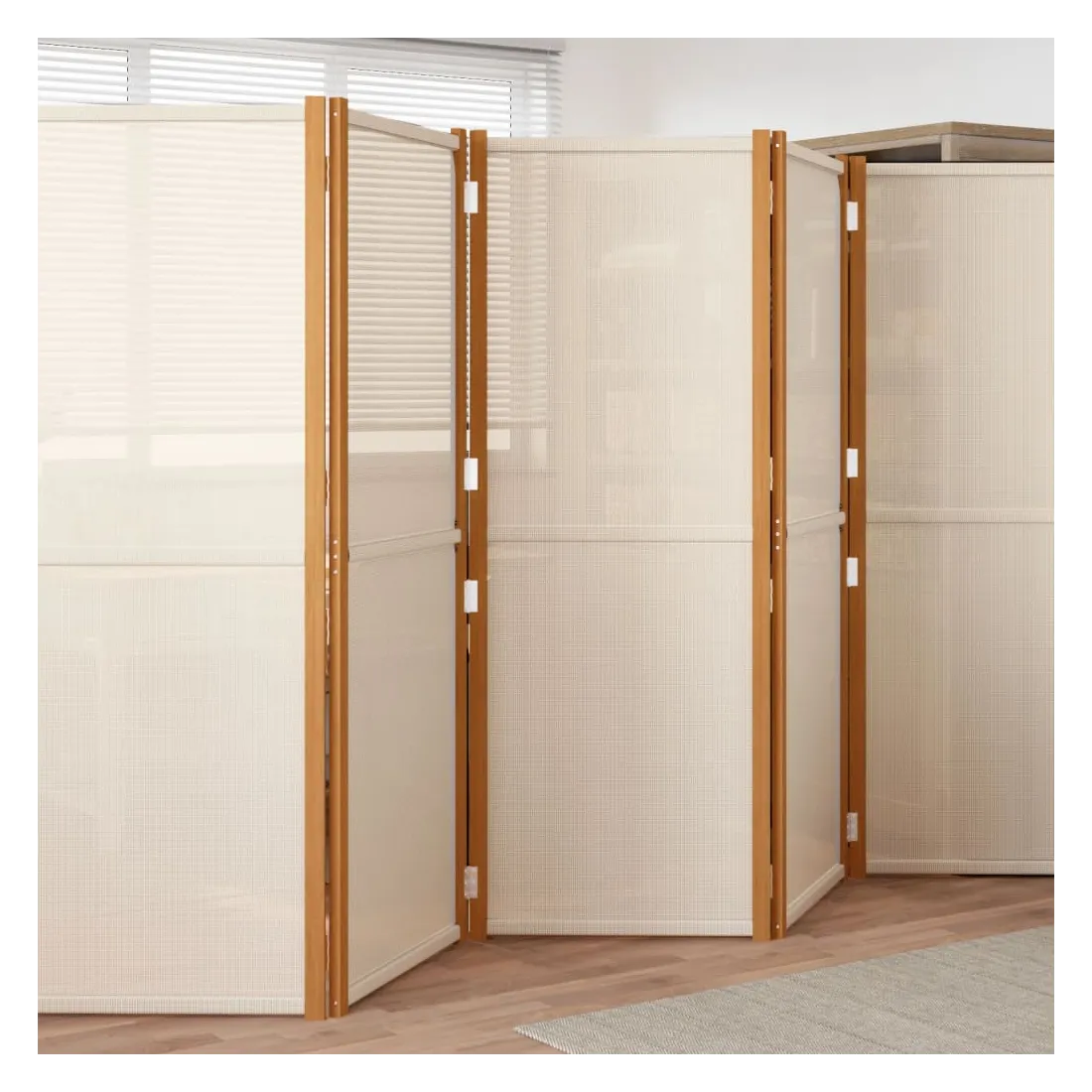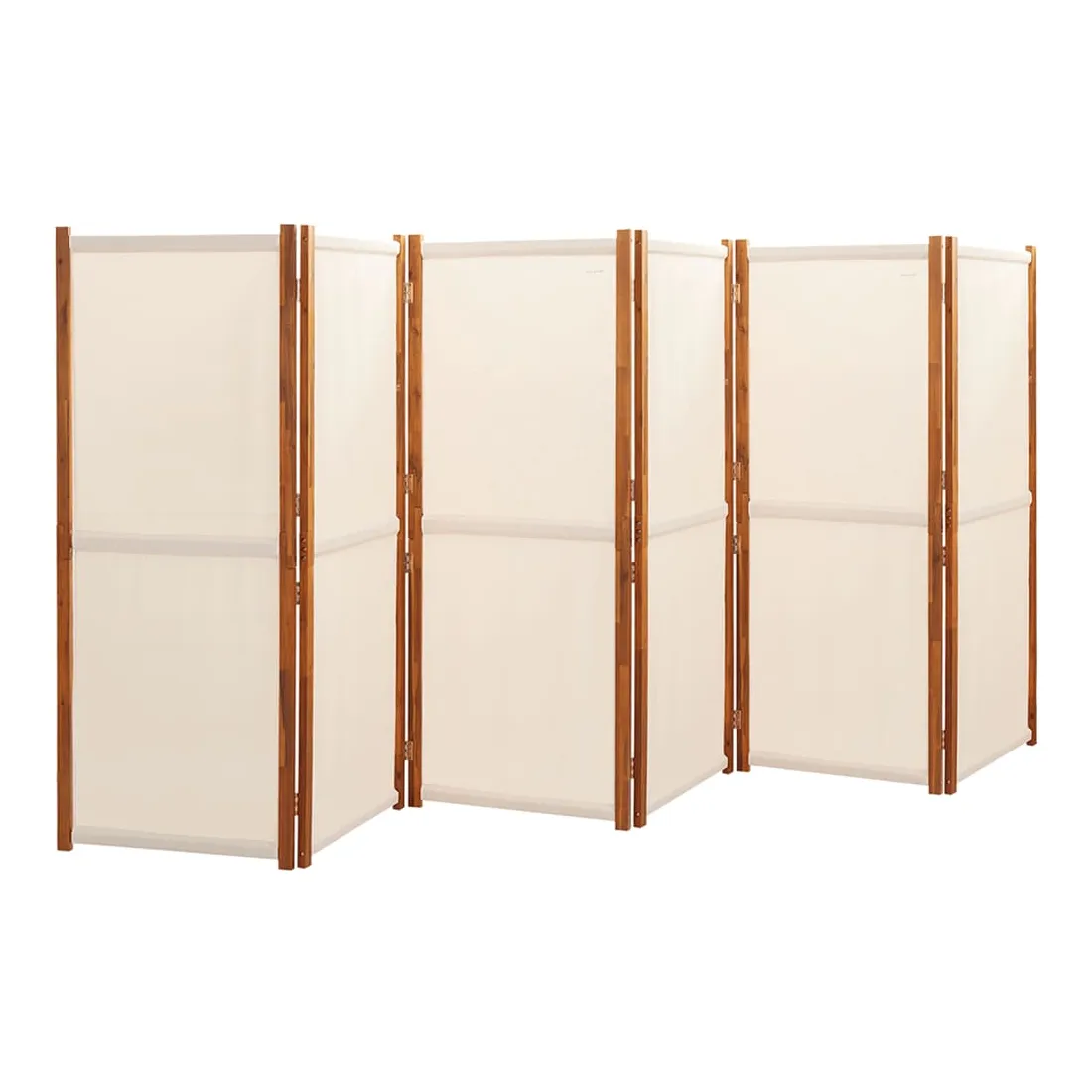 Cette cloison de séparation est parfaite pour créer une zone ou une section séparée et privée dans votre espace de vie intérieur ou extérieur. Matériau de première qualité : le bois d'acacia massif est un matériau naturel magnifique. Le bois d'acacia est un bois dur tropical, qui est dense, robuste et durable. Le textilène robuste est également résistant aux intempéries et facile à nettoyer.Design pliable : cet écran à panneaux peut également être plié facilement pour économiser de l'espace lorsqu'il n'est pas utilisé.Fonctions multiples : ce pare-vue peut être utilisé aussi bien comme décoration que comme cloison. Il est parfait pour séparer une zone pour plus d'intimité ou pour créer une pièce supplémentaire.