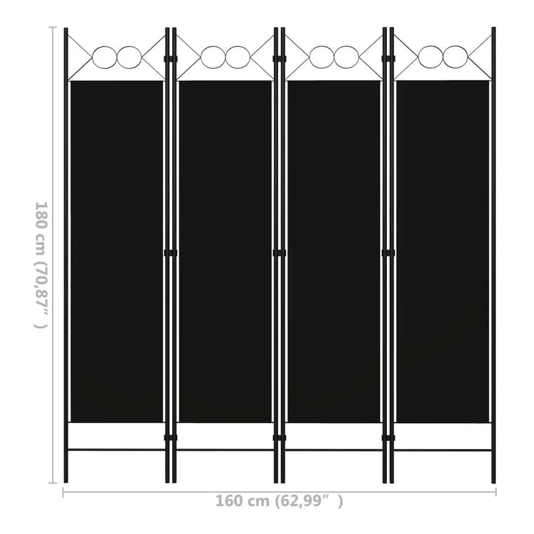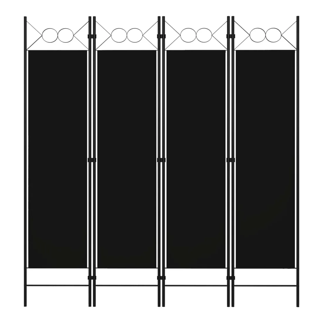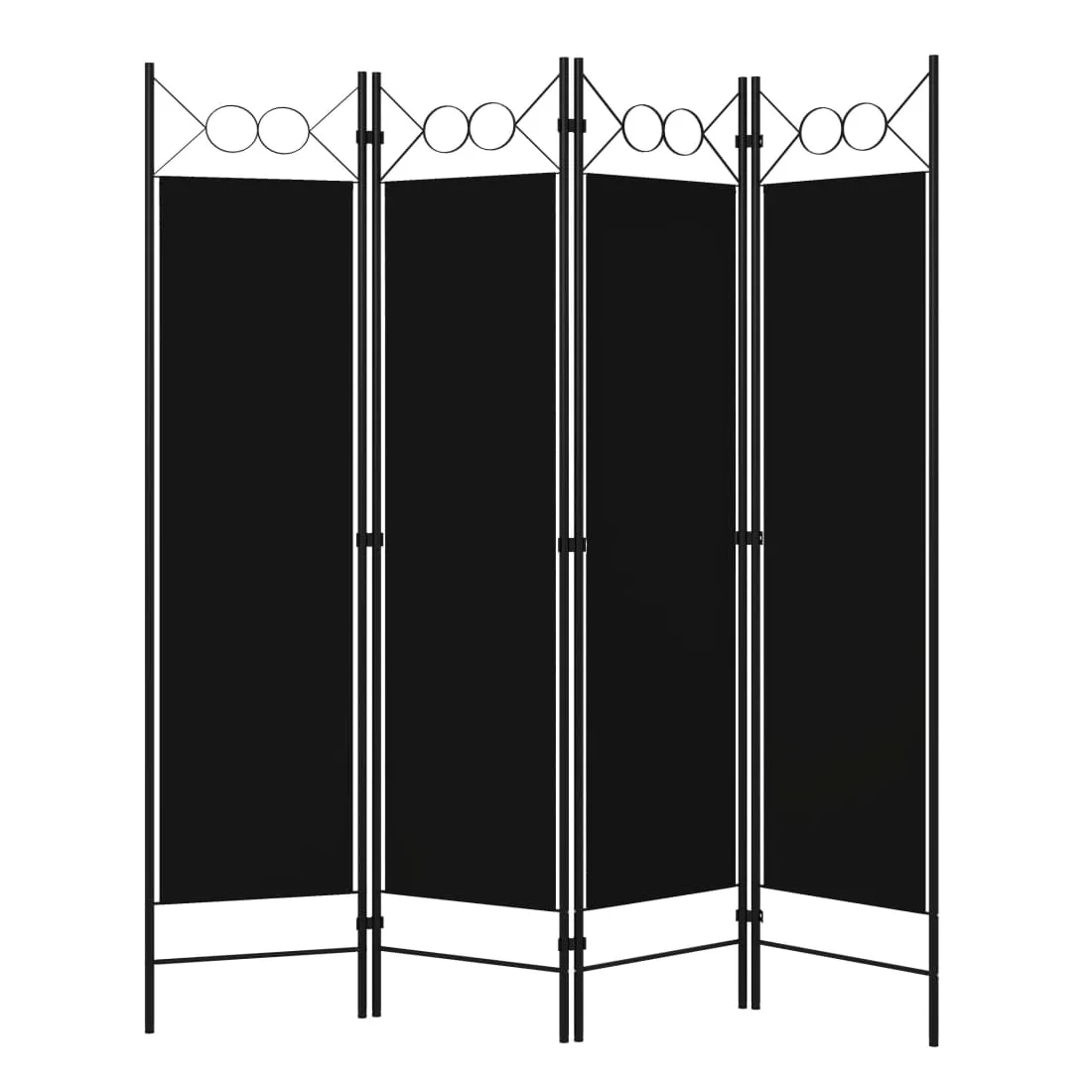 Notre cloison de séparation autoportante et pratique à 4 panneaux peut être utilisée comme cloison, écran d'intimité ou pour la décoration. Elle offre une intimité idéale dans la chambre à coucher ou un compartiment de la pièce. Le dessus avec un design circulaire ajoute une élégance supplémentaire. Cette cloison de séparation, composée d'un cadre en fer enduit de poudre et d'écrans en tissu, peut être facilement pliée lorsqu'elle n'est pas utilisée. Remarque : le tissu ne bloque pas complètement toute la lumière.
