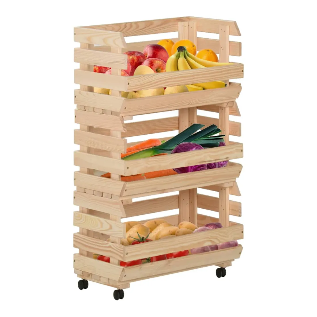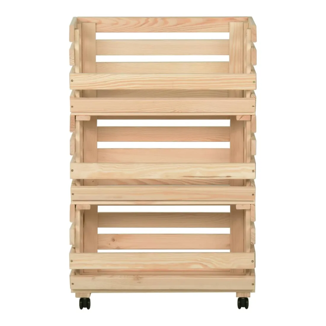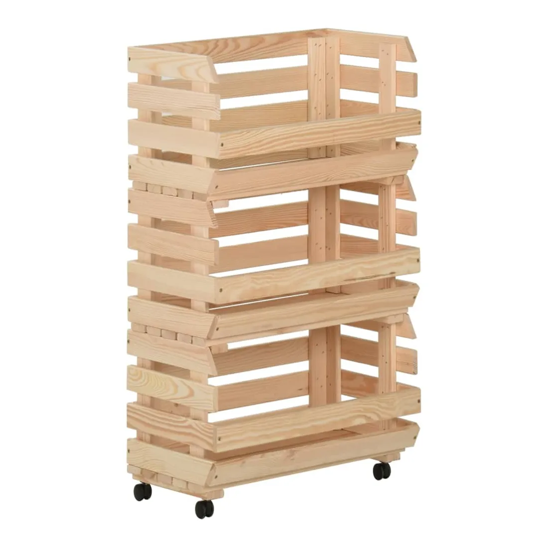 Ce chariot de cuisine ajoute une ambiance distinctive et rustique et offre un espace de rangement supplémentaire à votre maison. Cette boîte à fruits est fabriquée en pin massif, ce qui la rend stable et durable. Le chariot de rangement comprend 3 compartiments pour placer les aliments, les bouteilles et autres objets essentiels à portée de main. Grâce à sa conception détachable, vous pouvez utiliser chaque étagère individuellement selon vos besoins. De plus, le chariot de cuisine est équipé de roues flexibles pour un déplacement facile.