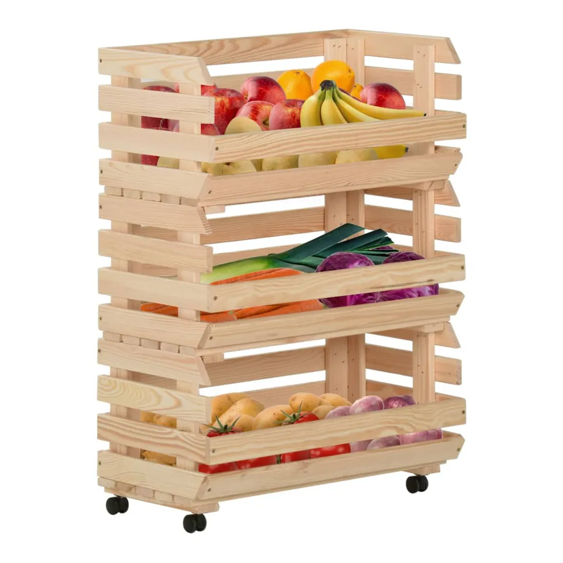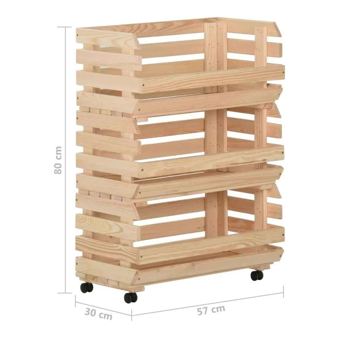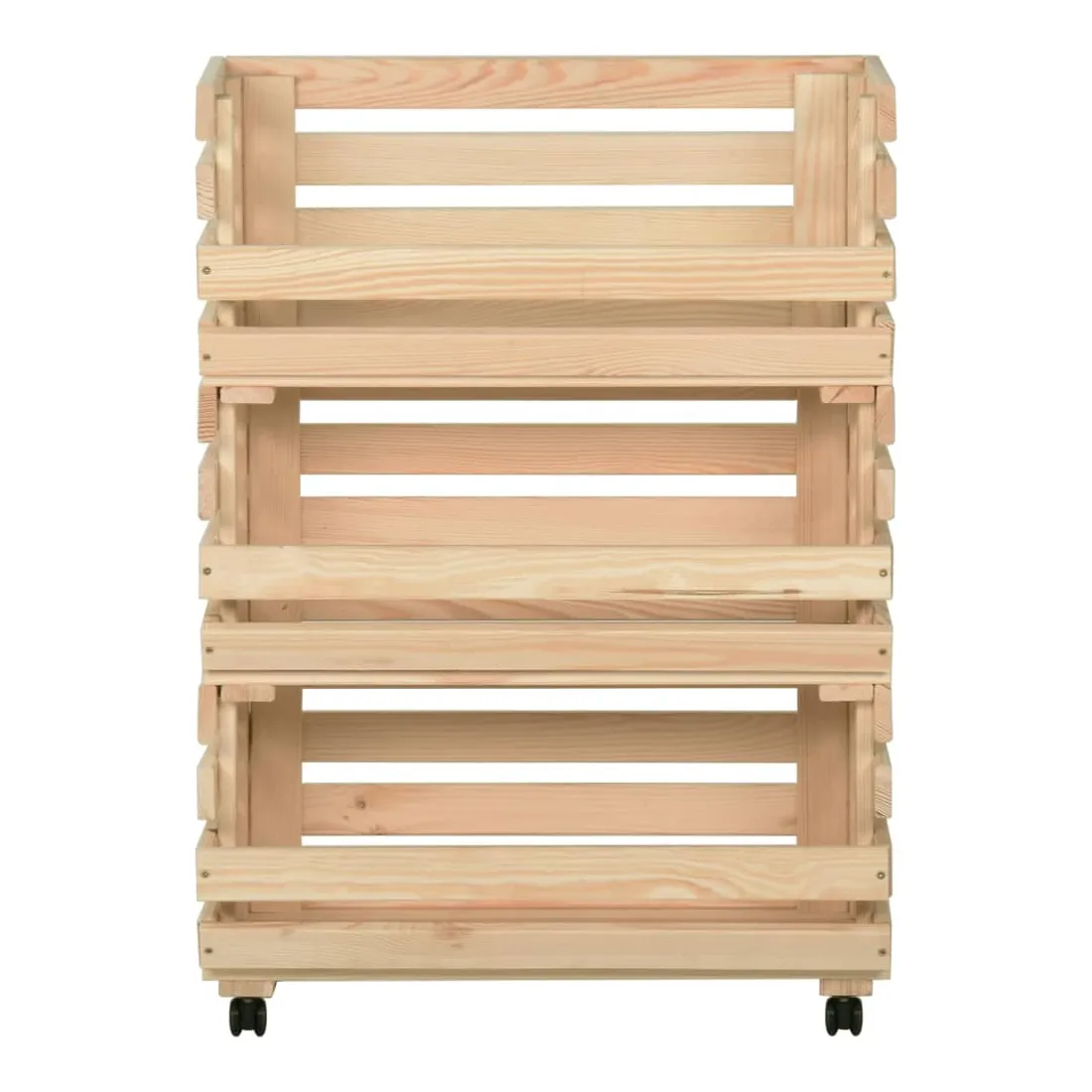 Ce chariot de cuisine ajoute une ambiance distinctive et rustique et offre un espace de rangement supplémentaire à votre maison. Cette boîte à fruits est fabriquée en pin massif, ce qui la rend stable et durable. Le chariot de rangement comprend 3 compartiments pour placer les aliments, les bouteilles et autres objets essentiels à portée de main. Grâce à sa conception détachable, vous pouvez utiliser chaque étagère individuellement selon vos besoins. De plus, le chariot de cuisine est équipé de roues flexibles pour un déplacement facile.