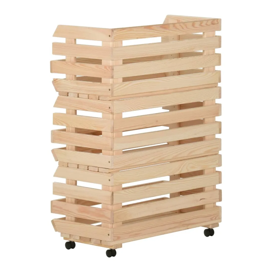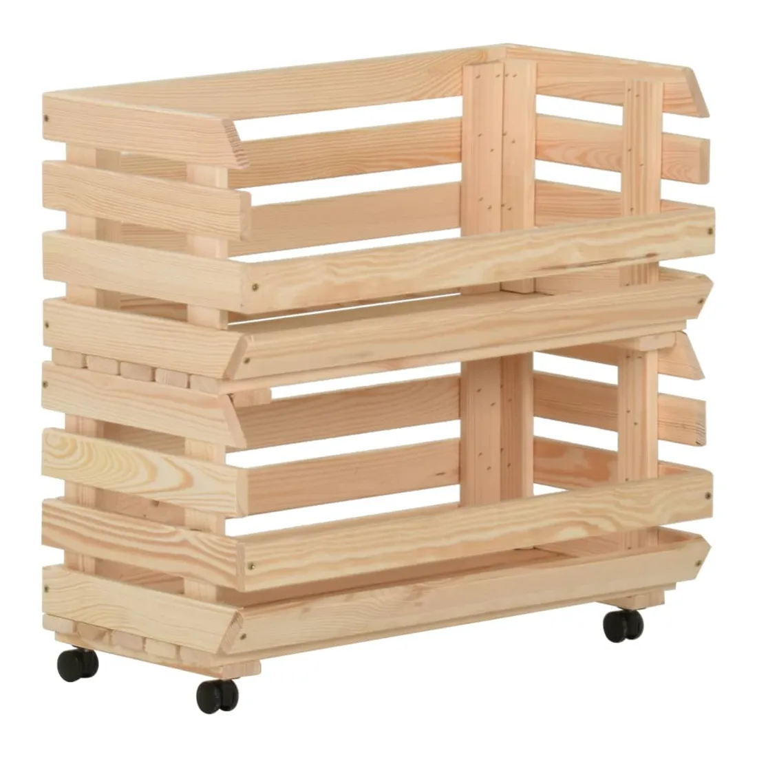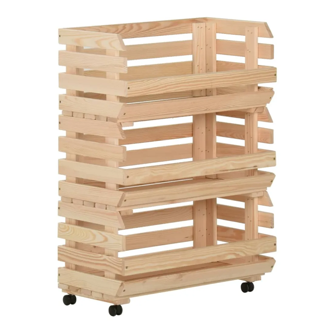 Ce chariot de cuisine ajoute une ambiance distinctive et rustique et offre un espace de rangement supplémentaire à votre maison. Cette boîte à fruits est fabriquée en pin massif, ce qui la rend stable et durable. Le chariot de rangement comprend 3 compartiments pour placer les aliments, les bouteilles et autres objets essentiels à portée de main. Grâce à sa conception détachable, vous pouvez utiliser chaque étagère individuellement selon vos besoins. De plus, le chariot de cuisine est équipé de roues flexibles pour un déplacement facile.