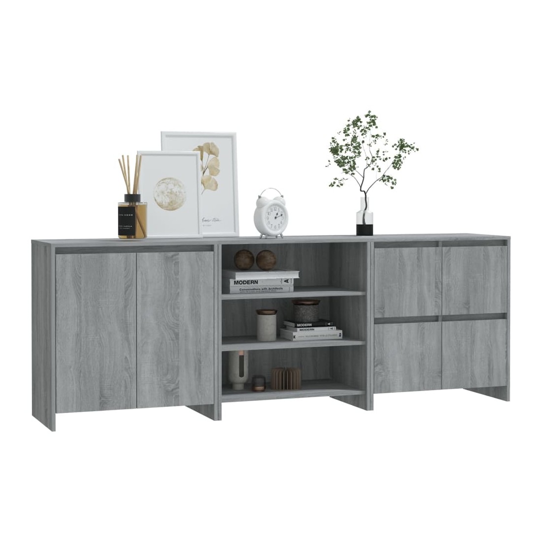 Ces buffets constituent un supplément décoratif et pratique parfait à votre décoration existante. Ces armoires latérales offrent un grand espace de rangement pour garder vos objets quotidiens organisés et à portée de main. Le dessus robuste est parfait pour exposer des objets décoratifs, des cadres photo et des plantes en pot. De plus, ces armoires de rangement sont faciles à nettoyer avec un chiffon humide.