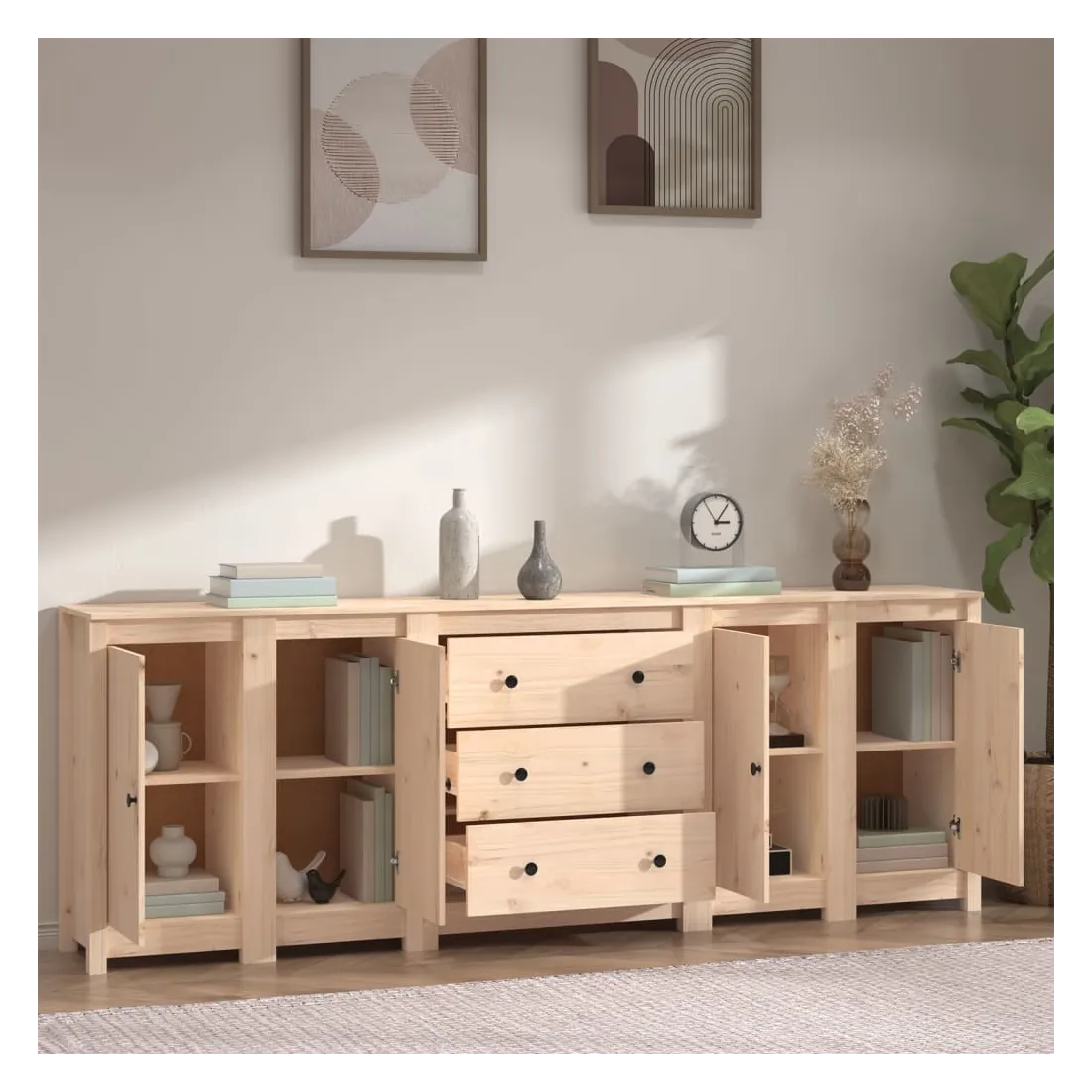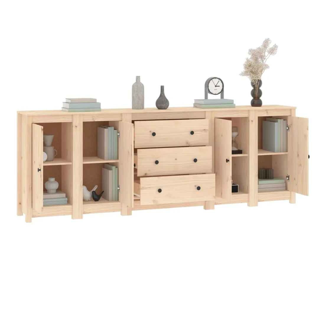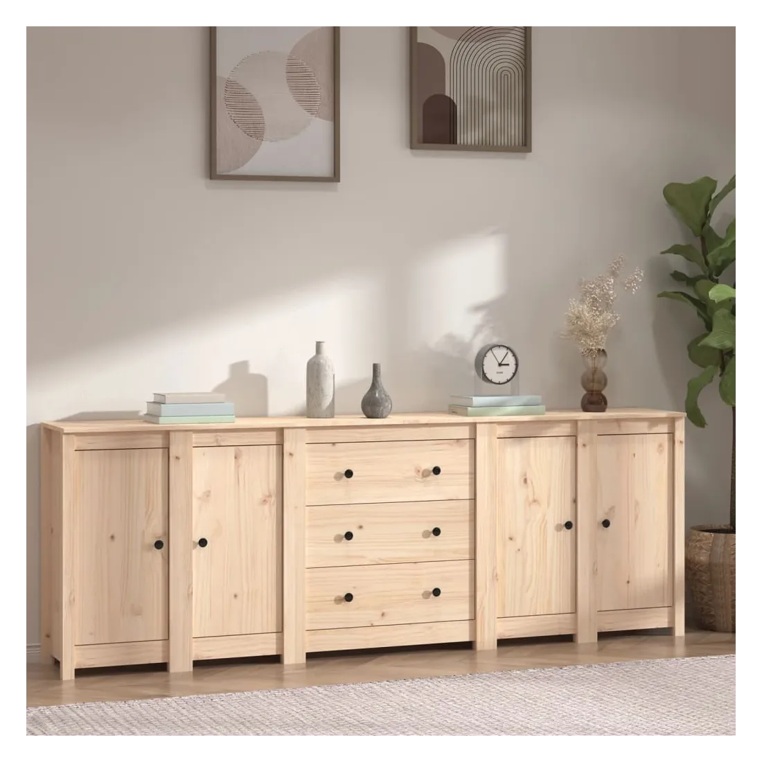 Rangez vos objets précieux de manière élégante. Ce buffet est idéal pour tout salon, chambre à coucher ou bureau moderne pour garder les objets nécessaires à portée de main. Bois de pin massif : le bois de pin massif est un matériau naturel magnifique. Le bois de pin a un grain droit et les nœuds donnent au matériau son aspect caractéristique et rustique.Grand espace de rangement : l'armoire offre un grand espace de rangement pour garder vos différents articles essentiels quotidiens bien organisés et facilement accessibles.Dessus robuste : le dessus robuste de cette armoire est idéal pour exposer des objets décoratifs, des cadres photo ou des plantes en pot. Attention :Afin d'éviter qu'il ne bascule, ce produit doit être utilisé avec le dispositif de fixation murale fourni.Remarque :Chaque produit est livré avec un manuel de montage dans la boîte pour un montage facile.