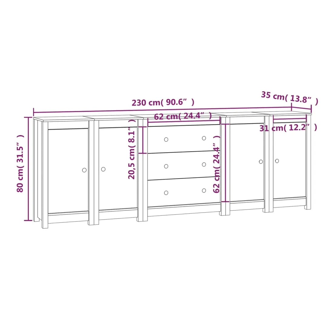 Buffet 230x35x80 cm Bois massif de pin