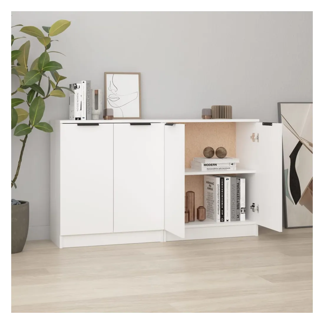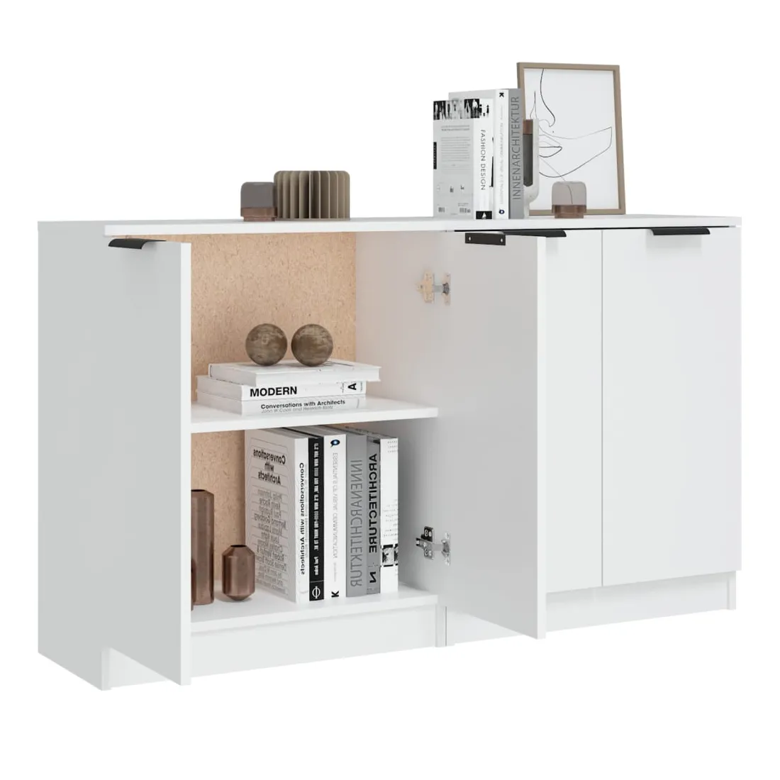 Dotés d'un charme minimaliste, ces buffets sont destinés à satisfaire vos différentes exigences et à compléter idéalement votre pièce. Matériau facile à nettoyer : fabriquées en bois d'ingénierie, les armoires latérales sont faciles à nettoyer. Le bois d'ingénierie est d'une qualité exceptionnelle avec une surface lisse et présente également résistance, stabilité et résistance à l'humidité.Grand espace de rangement : l'espace de rangement rend ces buffets faciles à organiser.Armoire multifonctionnelle : le dessus robuste est idéal pour afficher des objets décoratifs, des cadres photo ou des plantes en pot. Elles peuvent également être utilisées comme armoires de console, armoires latérales, etc. ATTENTION :Afin d'éviter le basculement, ces produits doivent être utilisés avec le dispositif de fixation murale fourni.