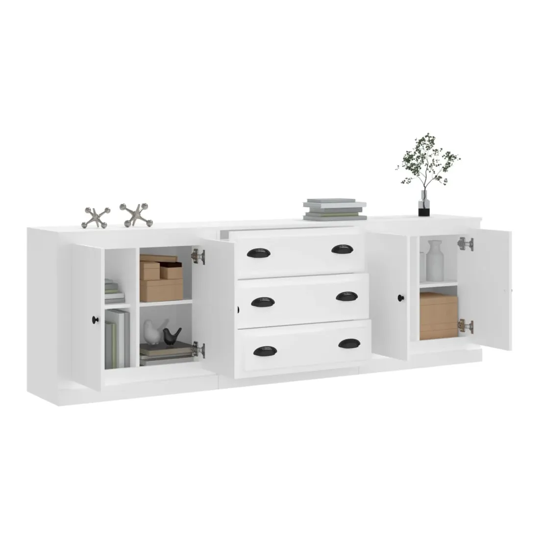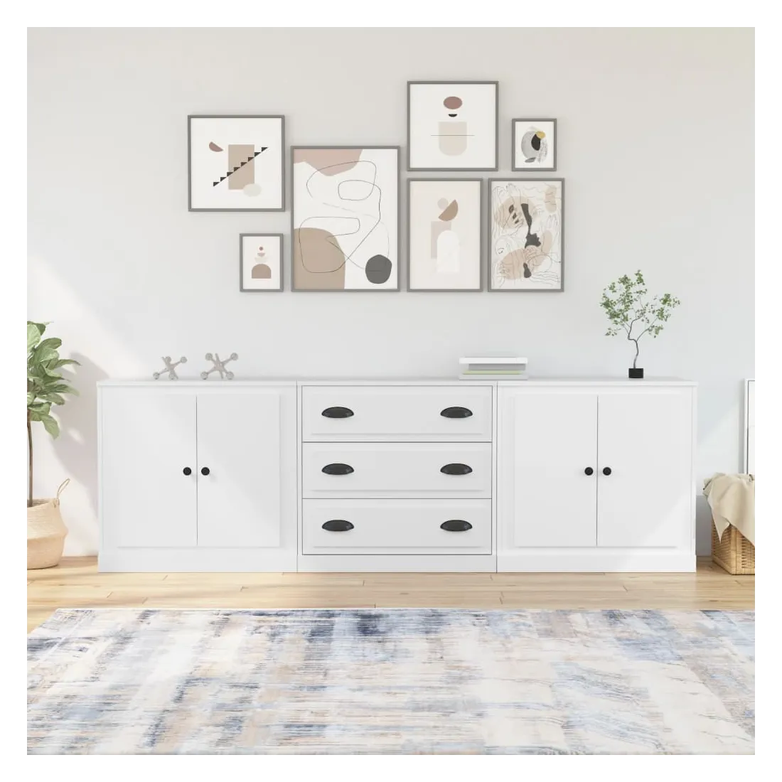 Ces buffets classiques, au look intemporel, sont conçus pour être un excellent supplément à votre maison. Matériau durable : le bois d'ingénierie est d'une qualité exceptionnelle avec une surface lisse et présente également résistance, stabilité et résistance à l'humidité.Grand espace de rangement : l'armoire offre un grand espace de rangement pour garder vos différents articles essentiels quotidiens bien organisés et facilement accessibles.Fonction d'affichage : vous pouvez également placer vos photos, décorations ou fleurs préférées sur l'armoire de rangement pour enrichir votre vie. Attention :Pour éviter qu'il ne soit renversé, ce produit doit être utilisé avec le dispositif de fixation au mur fourni