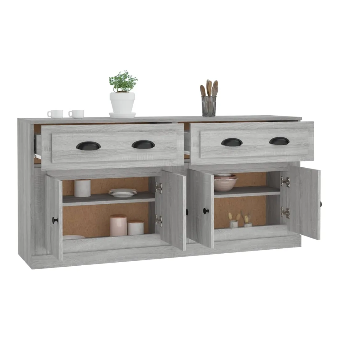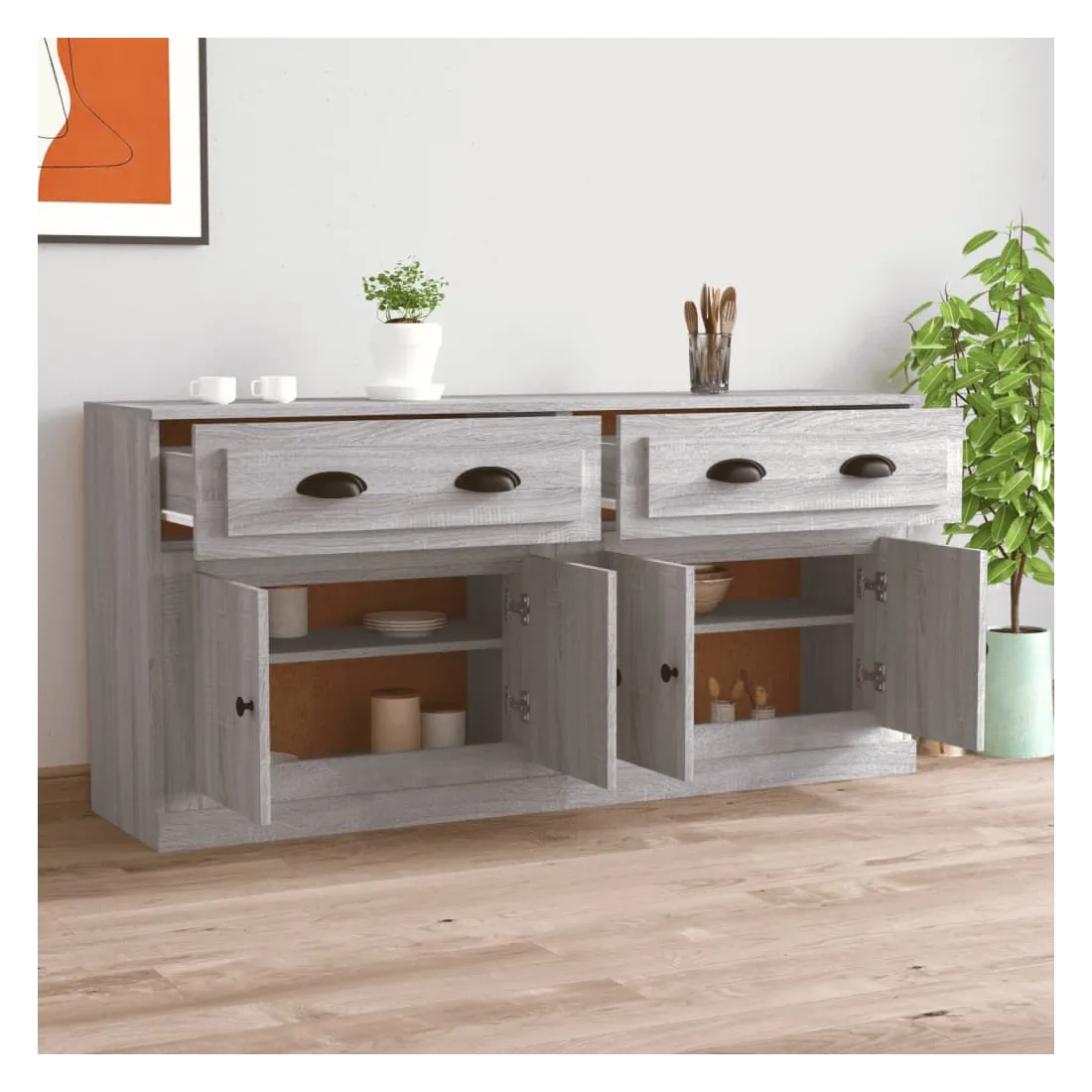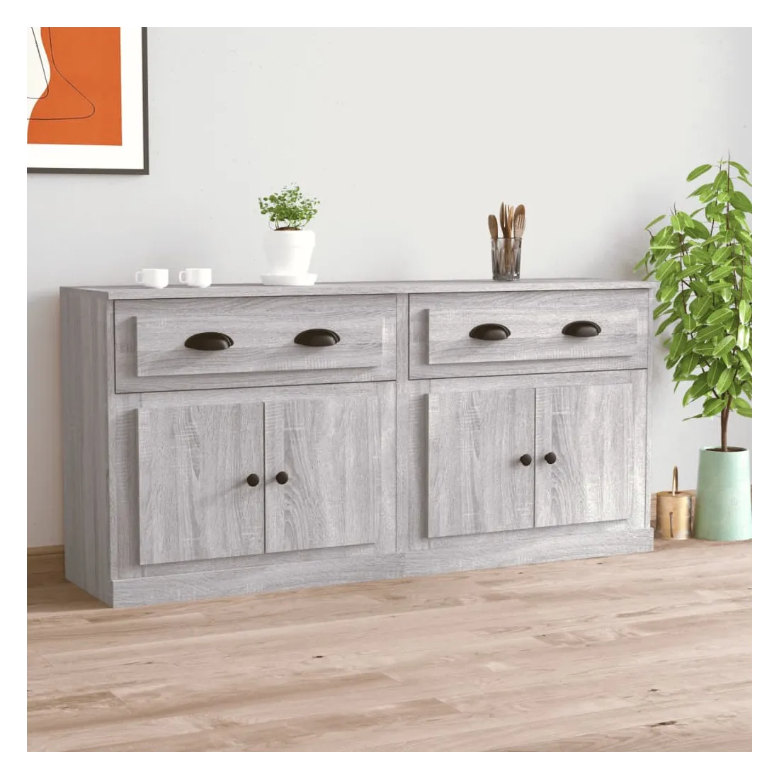 Ces buffets classiques, au look intemporel, sont conçus pour être un excellent supplément à votre maison. Matériau durable : le bois d'ingénierie est d'une qualité exceptionnelle avec une surface lisse et présente également résistance, stabilité et résistance à l'humidité.Grand espace de rangement : l'armoire offre un grand espace de rangement pour garder vos différents articles essentiels quotidiens bien organisés et facilement accessibles.Fonction d'affichage : vous pouvez également placer vos photos, décorations ou fleurs préférées sur l'armoire de rangement pour enrichir votre vie. Bon à savoir :Pour faciliter au maximum le montage, chaque produit est livré avec des instructions. Attention :Pour éviter qu'il ne soit renversé, ce produit doit être utilisé avec le dispositif de fixation au mur fourni