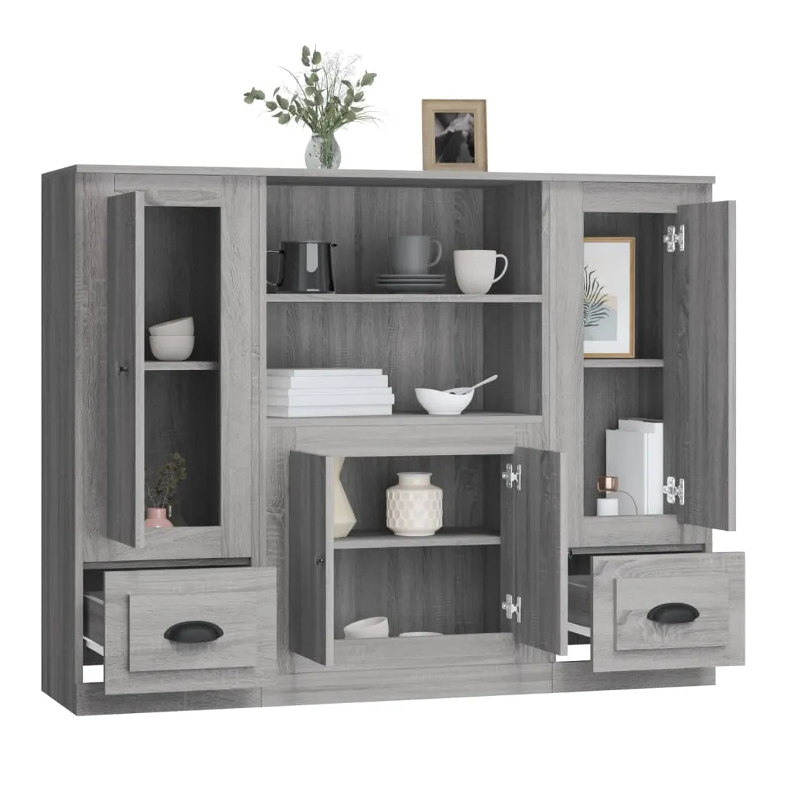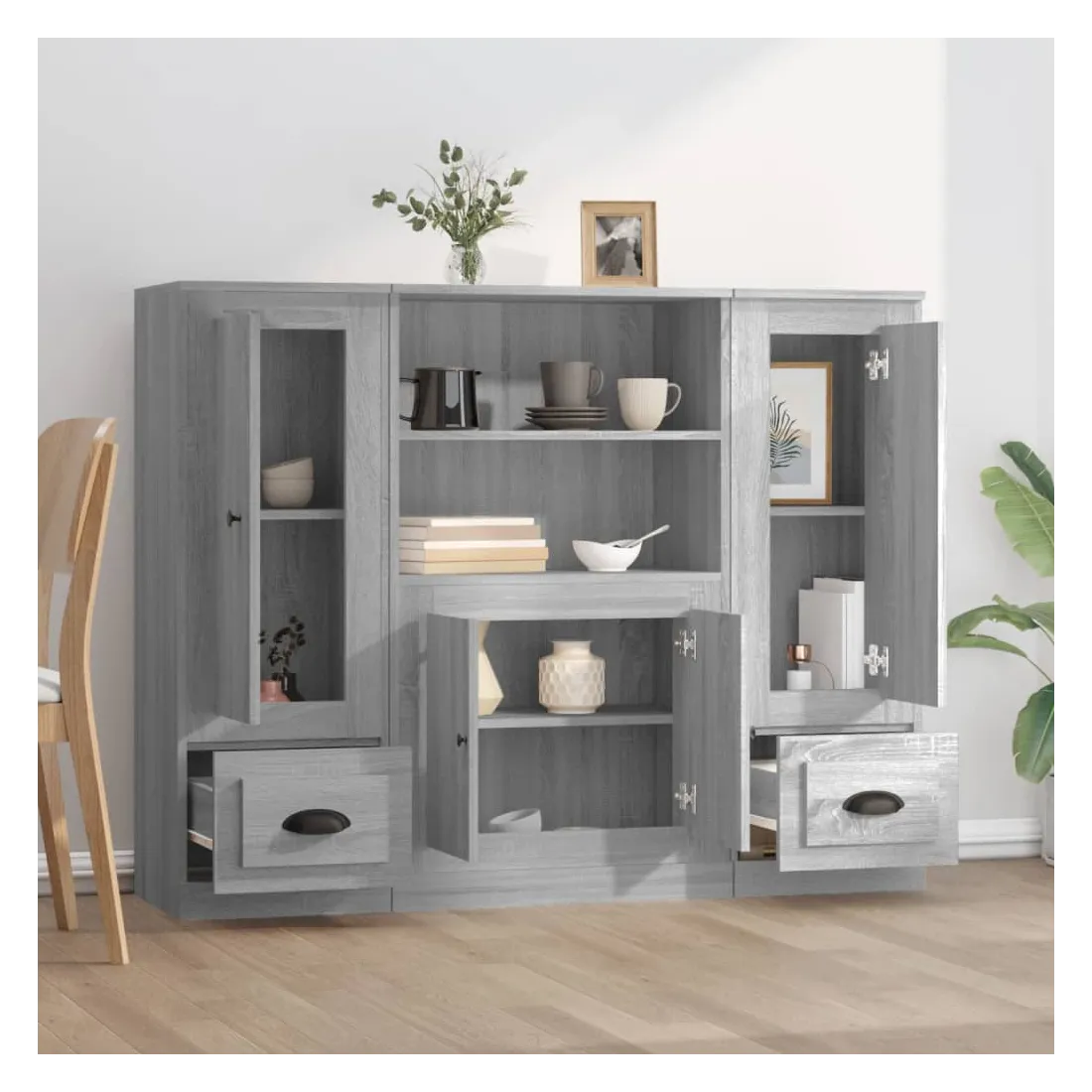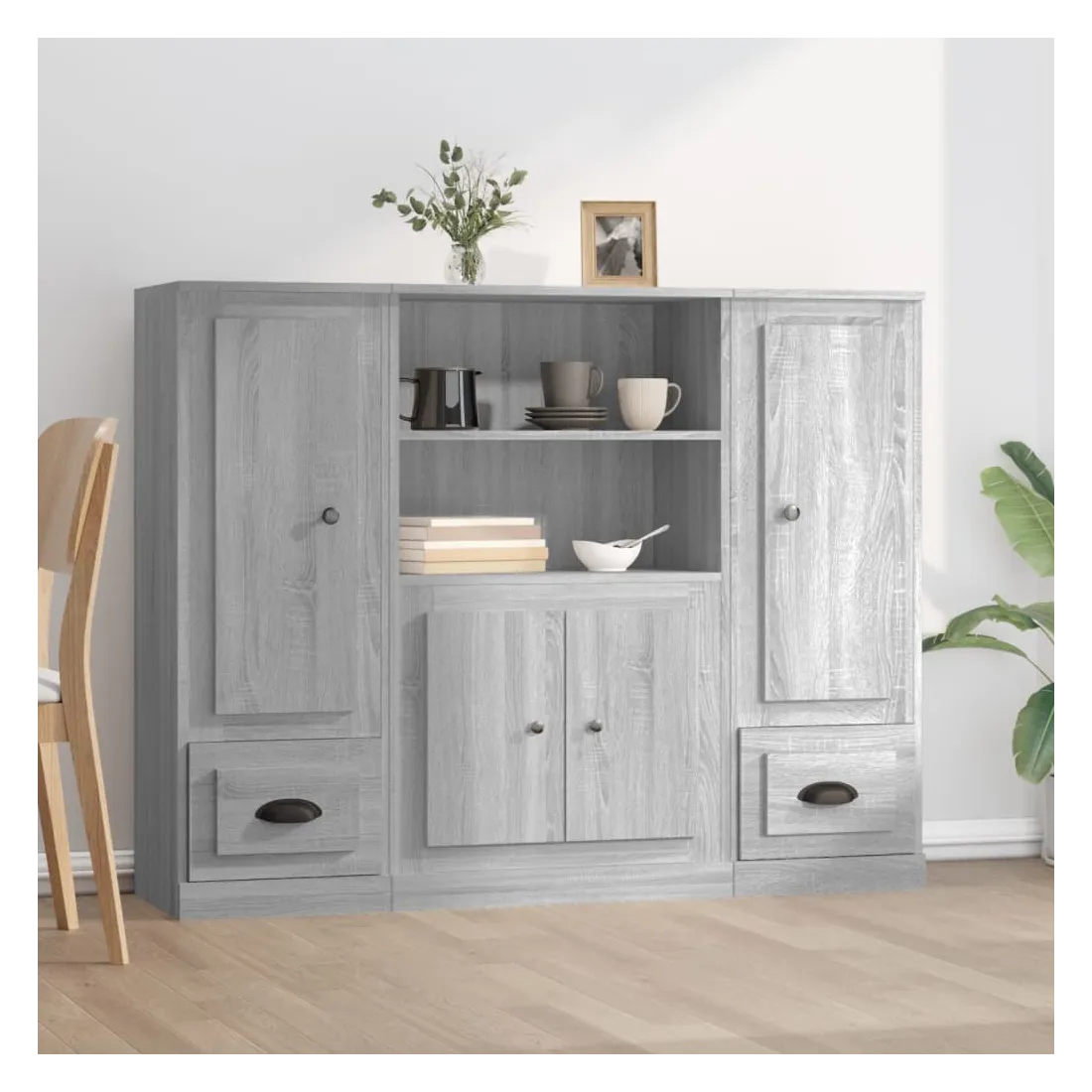 Vous êtes à la recherche de buffets élégants ? Ces buffets ajoutent un charme élégant à votre intérieur existant ! Matériau durable : le bois d'ingénierie est d'une qualité exceptionnelle avec une surface lisse et présente également résistance, stabilité et résistance à l'humidité.Grand espace de rangement : le buffet offre un grand espace de rangement pour garder vos différents articles essentiels quotidiens bien organisés et facilement accessibles.Design intemporel : cette armoire présente des lignes épurées et simples, ainsi qu'un look minimaliste qui ajoute un style intemporel à votre décor intérieur actuel. Attention :Pour éviter qu'il ne soit renversé, ce produit doit être utilisé avec le dispositif de fixation au mur fourni.