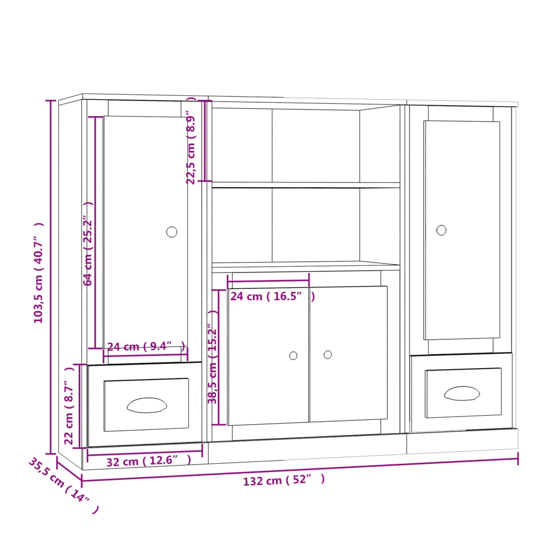- Dimensions totales : 132 x 35,5 x 103,5 cm (L x l x H)