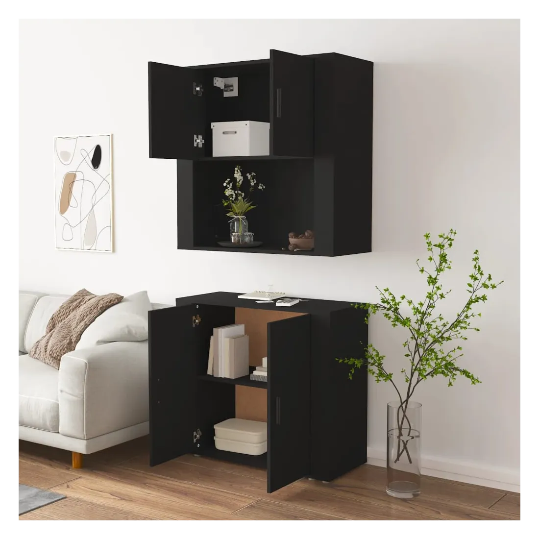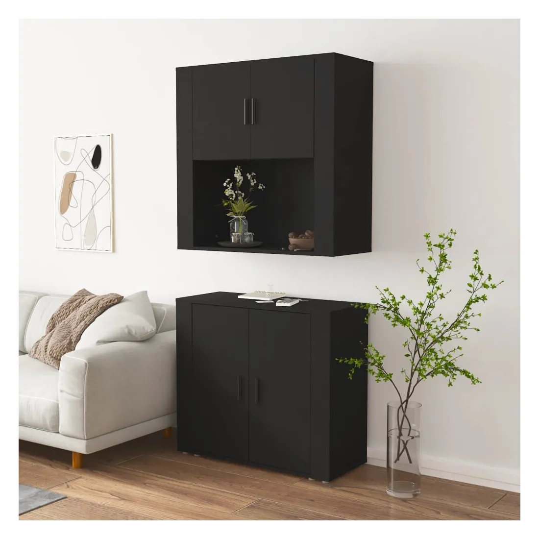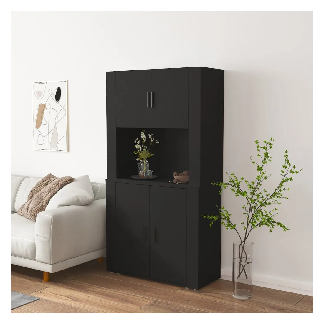 Cherchez-vous un buffet haut de gamme stylé ? Ce buffet haut ajoute un charme unique à votre intérieur existant ! Matériau durable : le bois d'ingénierie est d'une qualité exceptionnelle avec une surface lisse et présente également résistance, stabilité et résistance à l'humidité.Grand espace de rangement : le buffet offre un grand espace de rangement pour garder vos différents articles essentiels quotidiens bien organisés et facilement accessibles.Fonction murale : le meuble de rangement peut être fixé au mur sur le dessus du buffet pour créer un buffet haut, ce qui permet de gagner de l'espace au sol. Ainsi, vous pouvez maximiser votre espace de vie et garder la zone propre et bien rangée. Bon à savoir :Pour faciliter au maximum le montage, chaque produit est livré avec des instructions.Les vis et les chevilles pour l'intérieur du mur ne sont pas incluses. Nous vous conseillons de trouver et d'utiliser des vis et des chevilles adaptées spécifiquement à vos murs. Si vous n'êtes pas sûr, vous pouvez consulter un professionnel. Veuillez lire et suivre chaque étape des instructions. Attention :Pour éviter qu'il ne soit renversé, ce produit doit être utilisé avec le dispositif de fixation au mur fourni.